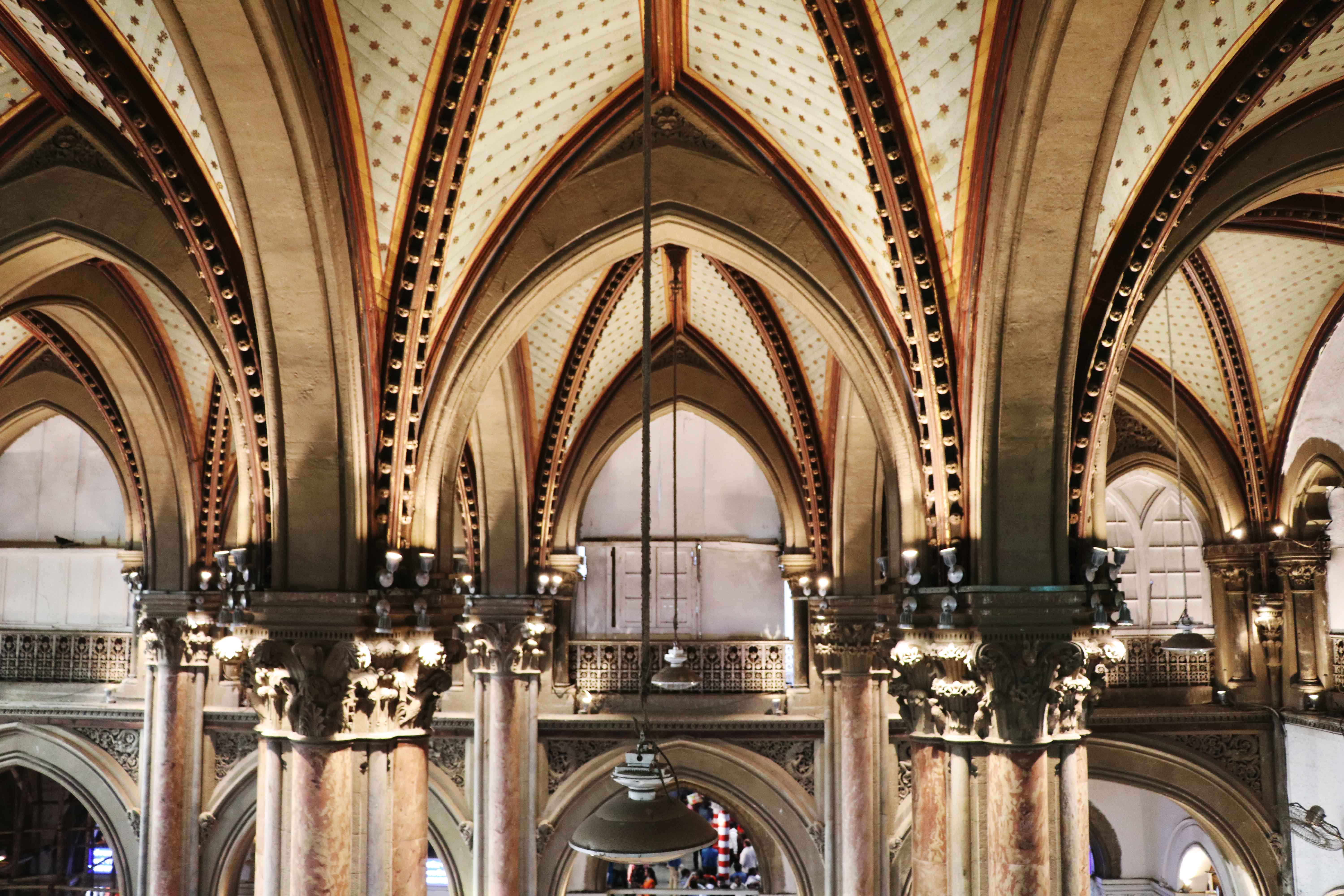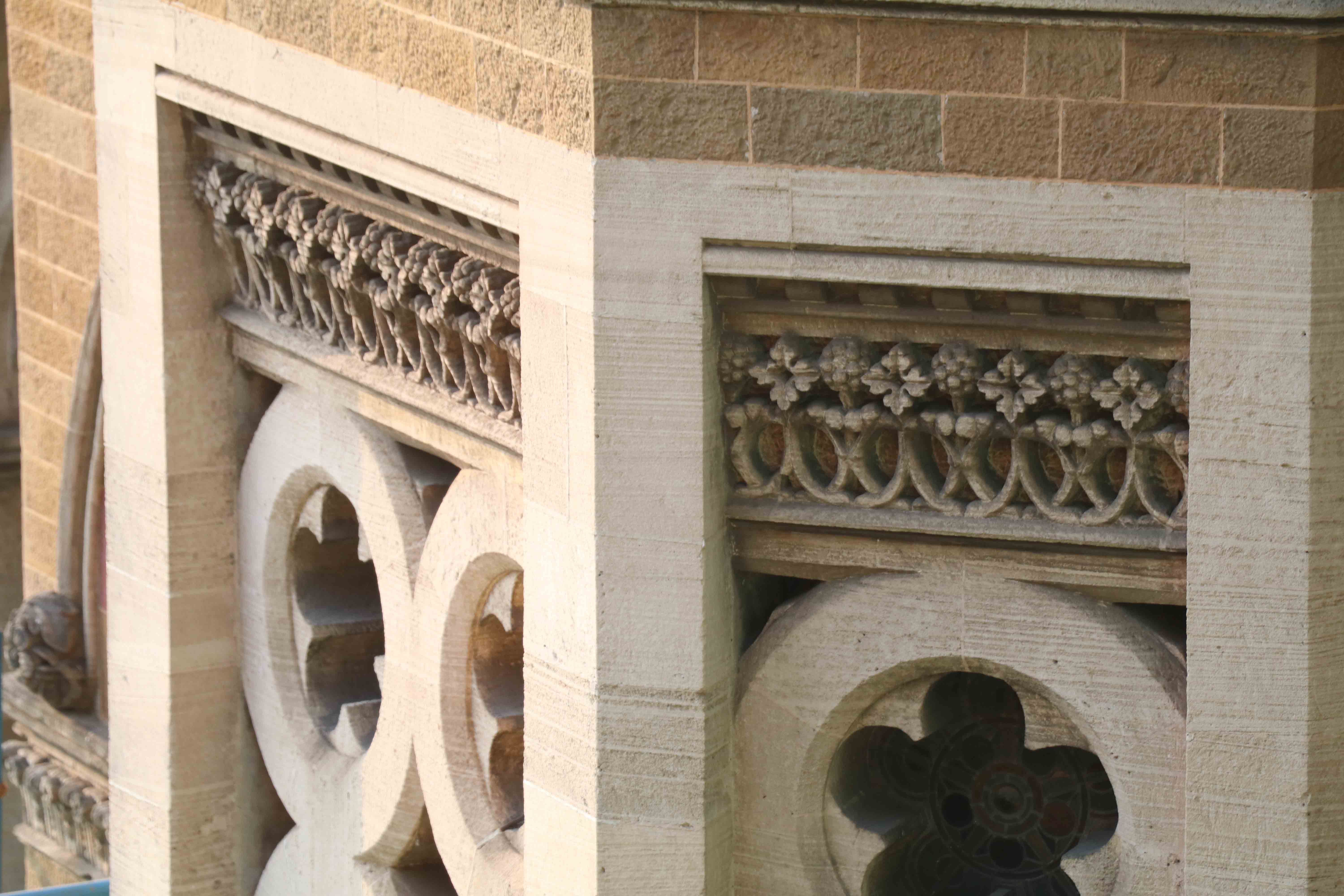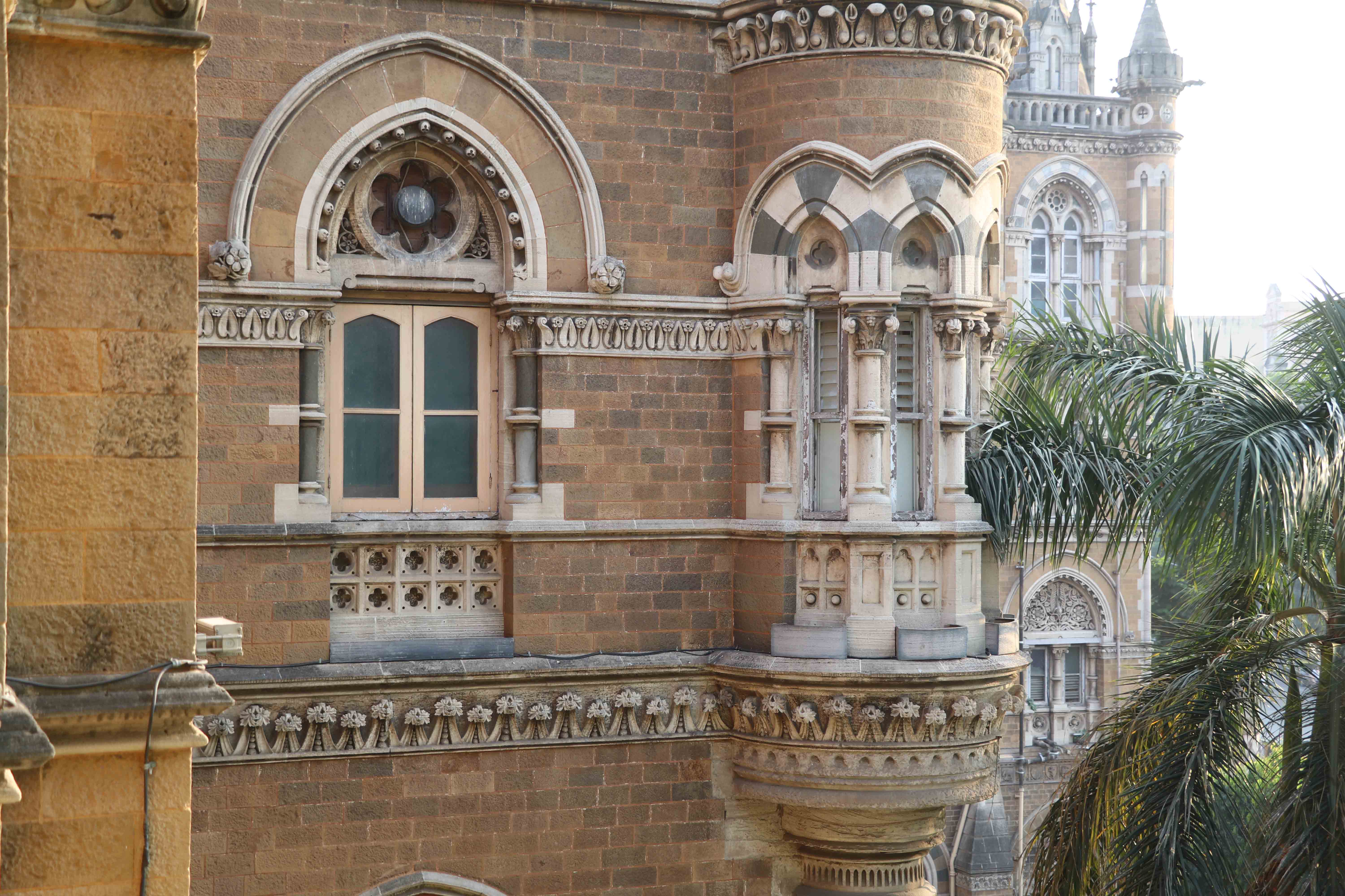 Typical of the gothic style, there are several rose windows in the building. The facade of the building has various ornamentations and bas relief figures of the directors of the GIPR company. At three different levels, the geometry of arches is different. The cylindrical projections contain toilets that are functional even today. The booking hall remains at the same location and has fantastic teak wood roof, still retaining its grandeur.