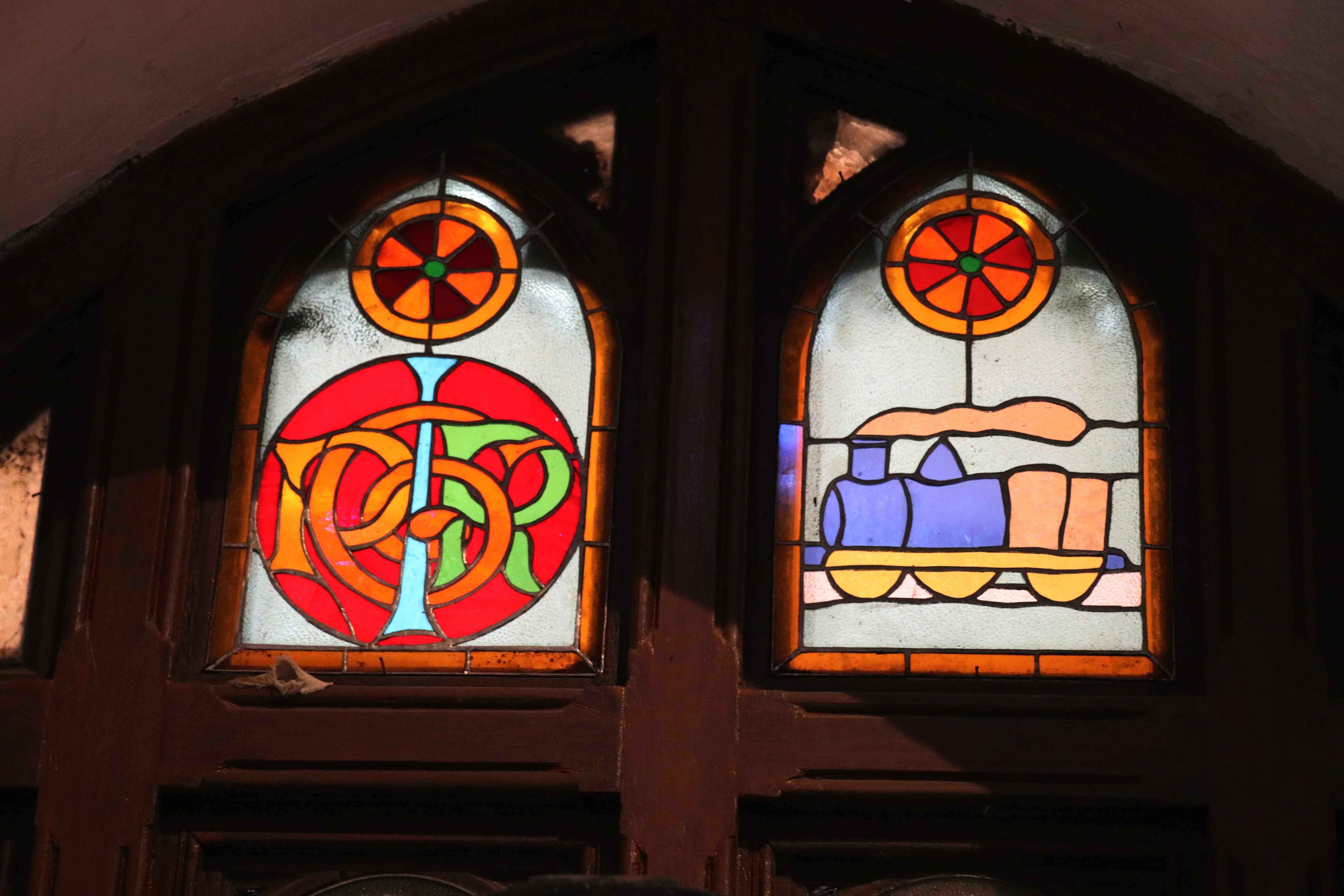 Apart from interesting stained glass motifs that show the GIPR logo and the locomotive. There are old advertisements of various train services operated in the eras gone by. I loved the Deccan Queen advert.. One could travel right into west Punjab which now belongs to Pakistan.