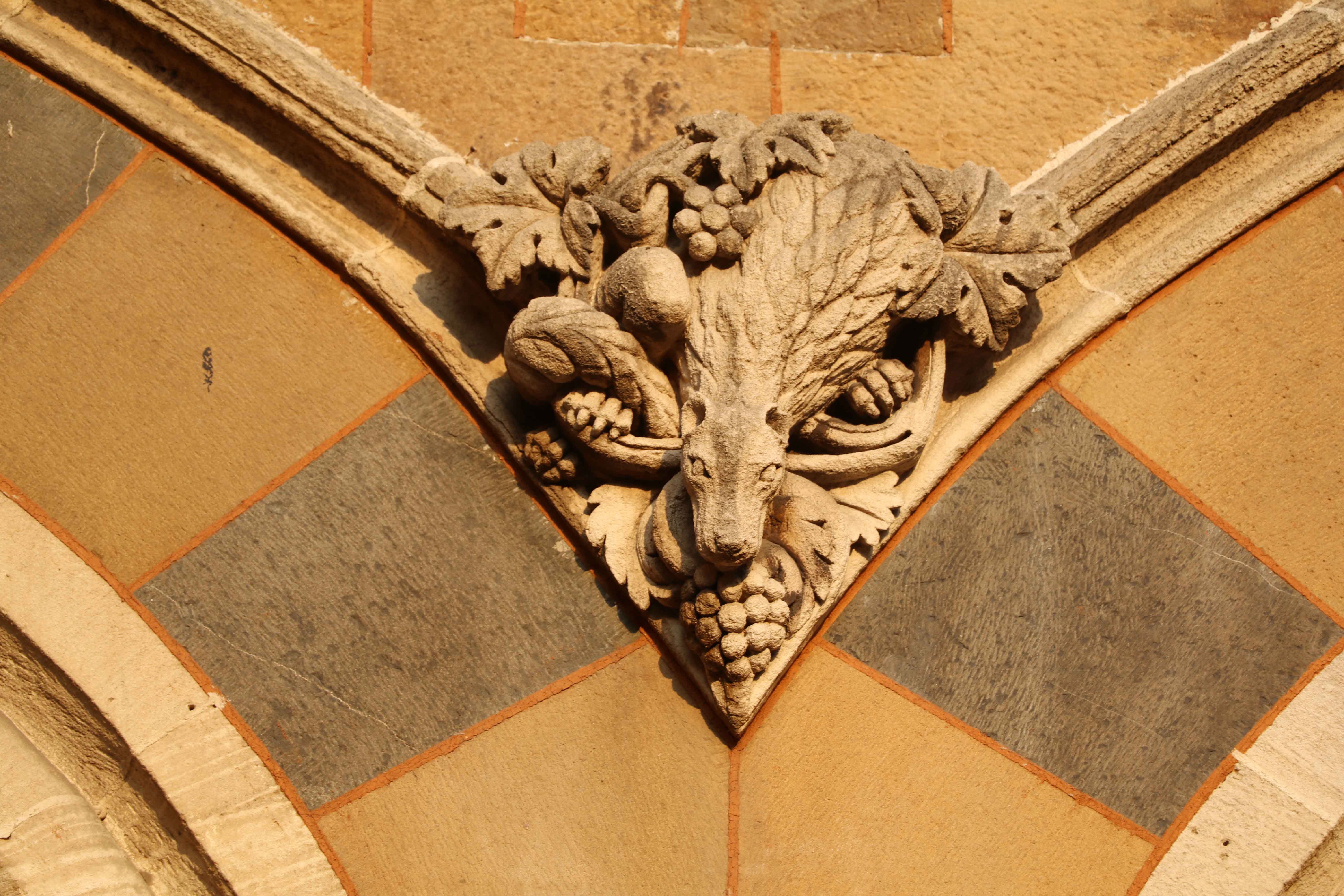 At the entrance there is this huge lion with English coat of arms and the railway locomotive insignia. Another interesting feature is the gryffindor with a spear guarding the building against evil spirits.