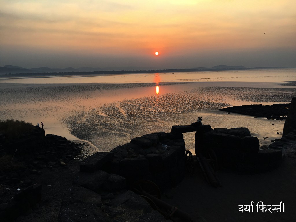 तटावरून चालत जाताना एक विलक्षण दृश्य मला दिसले. सूर्य आता हातभर वर आला होता. बुरुजाखालील दरवाजाच्या कमानीचे फोटो काढत असताना पूर्व दिशेला नजर गेली तर गणेश मंदिराच्या कळसाजवळ सूर्यबिंब आलेलं दिसलं. पुन्हा एकदा उगवतीलाच शांत वातावरणात लगबगीने किल्ल्यावर पोहोचल्याबद्दल मी स्वतःची पाठ थोपटून घेतली. मला वाटतं की कोणतेही पुरातत्व स्थळ पाहत असताना जर आपण विचारपूर्वक वेळ निवडली तर केवळ फोटोच चांगले येतात असं नाही तर एकंदर ते स्थळ पाहण्याचा अनुभव सुद्धा अधिक संपन्न असतो.
