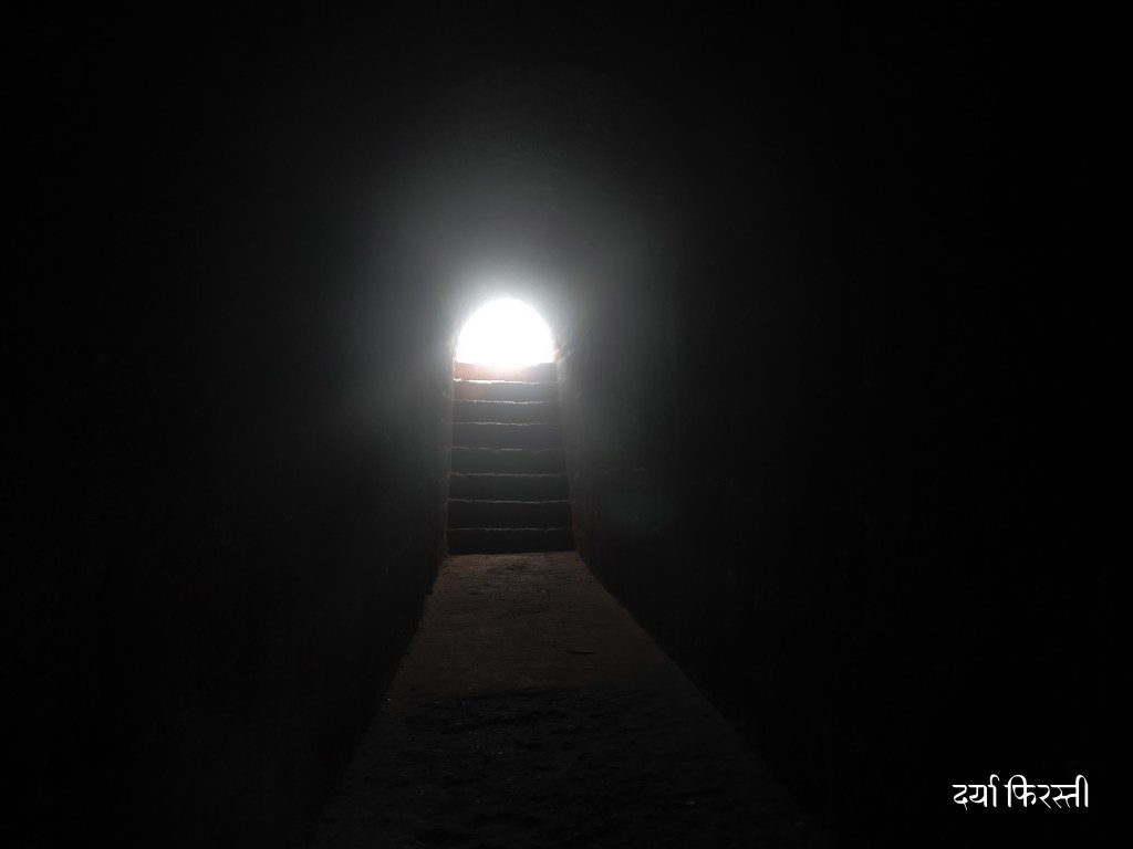 इथं दारूचं कोठार पाहून मग भुयाराकडे जायचं … शस्त्रे अन दारुगोळा लढत्या बुरुजाकडे नेताना या भुयाराचे संरक्षण सैनिकांना मिळत असे.. पूर्व दिशेच्या झरोक्यातून या भुयारात येणारा प्रकाश पाहणे हा एक अद्भुत अनुभव असतो… खूबलढा बुरुजावरून दिसतात बंदुका आणि तीरांचा मारा करण्यासाठीच्या जंग्या … आणि समुद्राला भिडलेल्या बुरुजांची मालिका … जांभा दगडात बांधलेली ही तटबंदी मराठा दुर्गबांधणीचे वैभव दाखवते.. तटबंदी च्या पायाशी असलेल्या दगडांच्या राशी … लाटांचे प्रहार झेलतात .. पूर्वेकडील तटावरून सकाळच्या वेळेला वाघोटन नदीचे चंदेरी पाणी दिसते… निळ्या सागरात मासेमारीला निघालेली होडी दिसते जैतापूरचा डोंगरकडा सागराला जाऊन भिडलेला दिसतो आणि माडबन-बाकाळे चा सुंदर समुद्र किनाराही दिसतो…