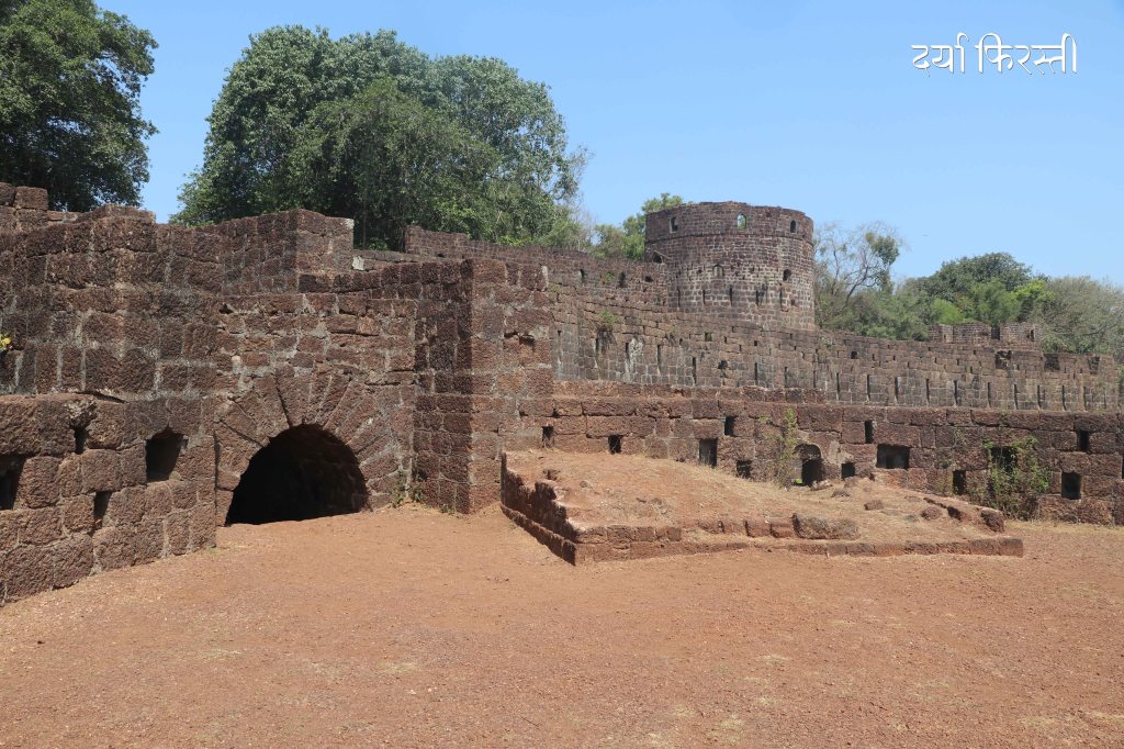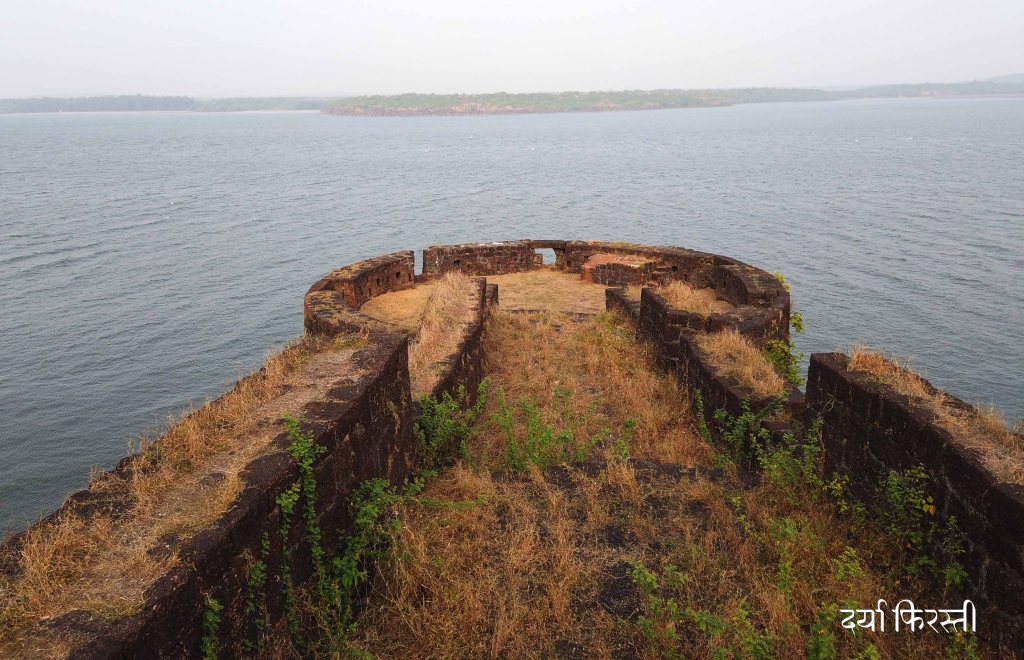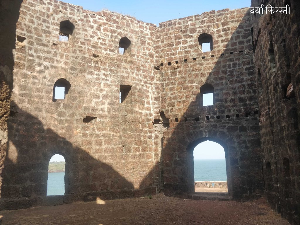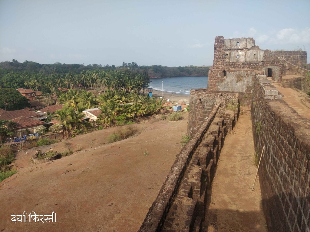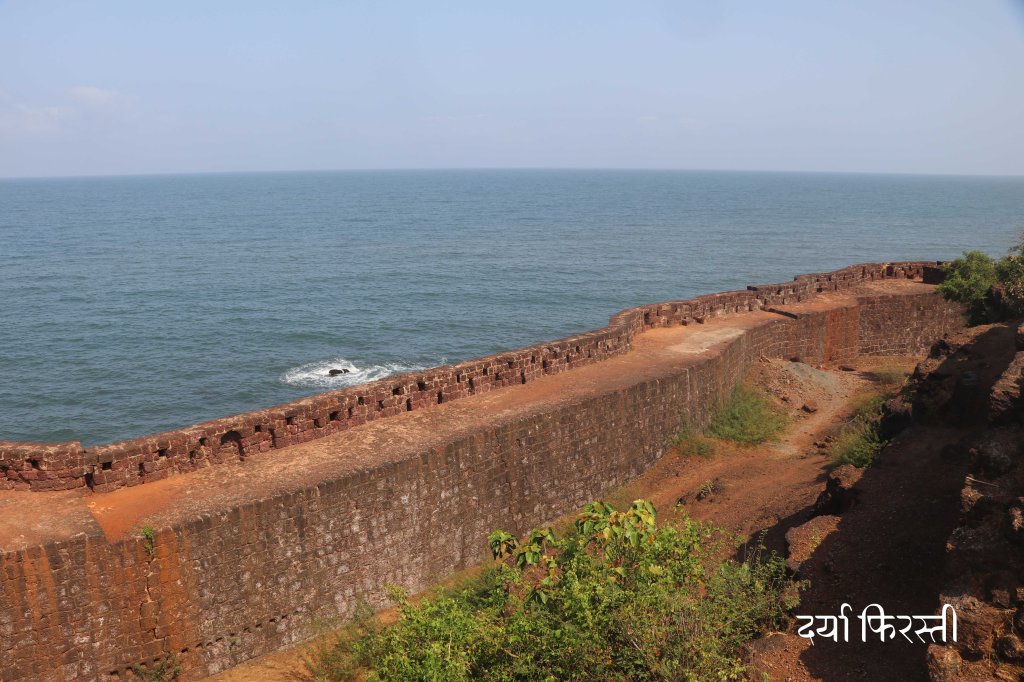 गणेश हनुमंत शिखरा सर्जा मनरंजन अशा नावाच्या बुरुजांची पाहणी करायला एक किलोमीटर लांब गडफेरी केली पाहिजे …तिन्ही बाजूने सागराची विविध रूपे आपल्याला खुणावत राहतात … सागर निळाई कितीही पाहिली तरीही मन तृप्त होत नाही.. वाघोटन नदीवर दीस मावळतीला येतो … आणि दांडेवाडीच्या किनाऱ्यावरून घेरीयाच्या पलीकडे सूर्य अस्ताला जाताना दिसतो  …