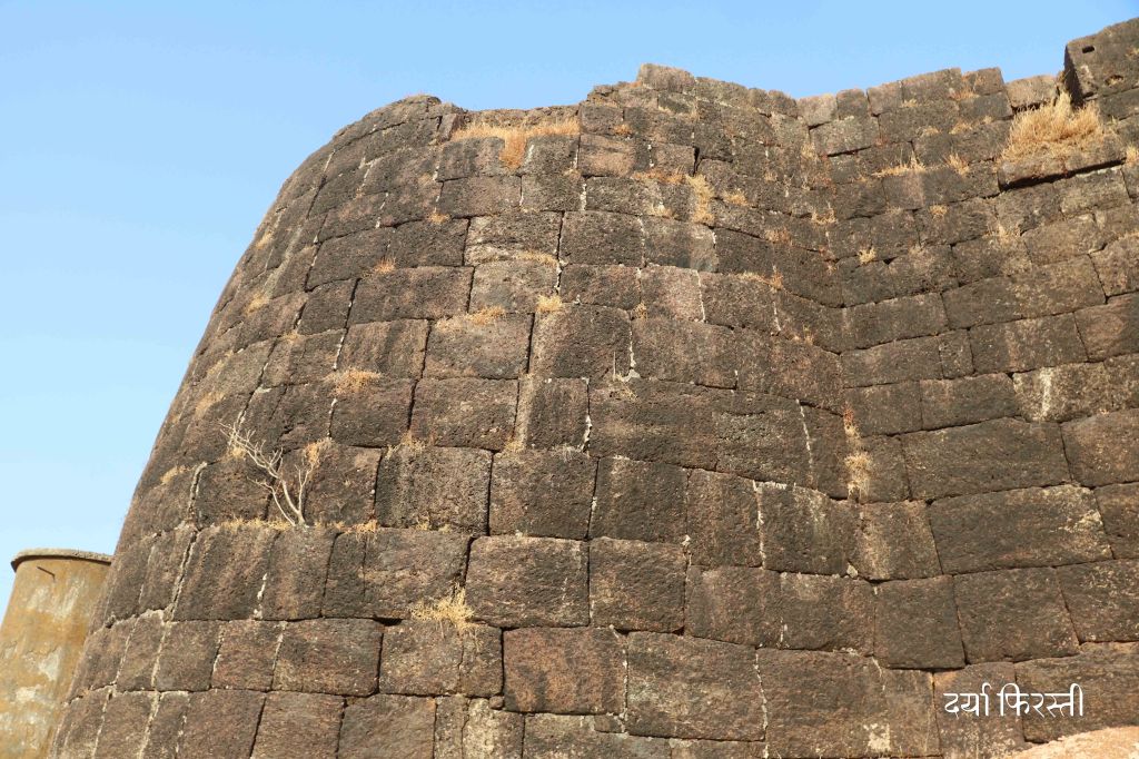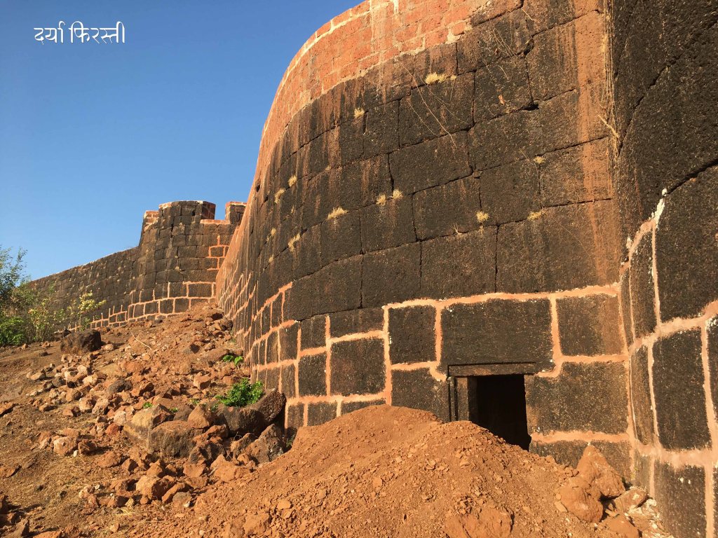 जांभा दगडात केलेलं तटबंदीचे बांधकाम आणि मुख्य दाराला असलेली महिरपी नक्षी किल्ल्यावर पोहोचताच लक्ष वेधून घेते. बाणकोट किल्ला म्हणजे आजच्या रायगड आणि रत्नागिरी जिल्ह्यांची सीमा रेषा. एकेकाळी ती सिद्दी आणि मराठ्यांच्या राज्यांमधील सीमा होती. संध्याकाळच्या वेळेला बाणकोटाचे बुरुज या पिवळ्या नारिंगी झळाळीने न्हाऊन निघालेले दिसतात.