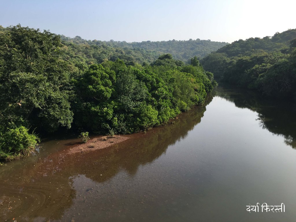 नकाशात बरीच शोधाशोध करूनही या छोट्याशा नदीचे नाव सापडले नाही. पण इथून पुढे हे अरुंद पात्र किमान ४-५ किलोमीटर तरी आत पूर्वेकडे जात असेल. वाहनांची आणि माणसांची अजिबात गर्दी नसल्याने या रानातील एकेक आवाज मला स्पष्ट ऐकू येत होता. पक्ष्यांची किलबिल ऐकू येत होती. खळाळणाऱ्या पाण्याने एक ठेका धरला होता तर नुकत्याच सुरु झालेल्या भरतीच्या लाटांची गाजसुद्धा ऐकू येत होती. इथून पुढे नदीकाठी महामाई देवीचे मंदिर आहे. आणि पूल ओलांडला की रोहिले गावाला सुरुवात होते.