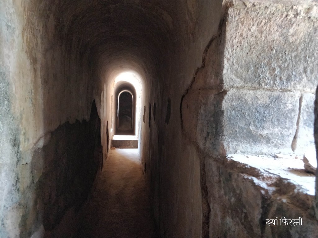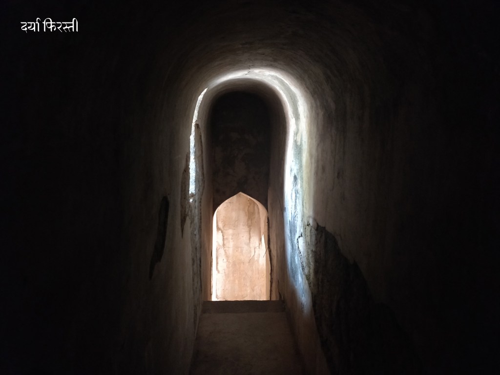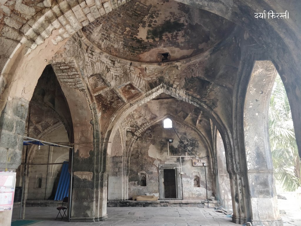 दगडी पायऱ्यांवरून चिंचोळ्या रस्त्याने आपण पहिल्या मजल्यावर येतो. आणि घुमटाची रचना आपल्याला वेगळ्या कोनातून जवळून पाहता येते. विजापूरच्या जामा मशिदीशी असलेलं साधर्म्य अजूनच जाणवतं