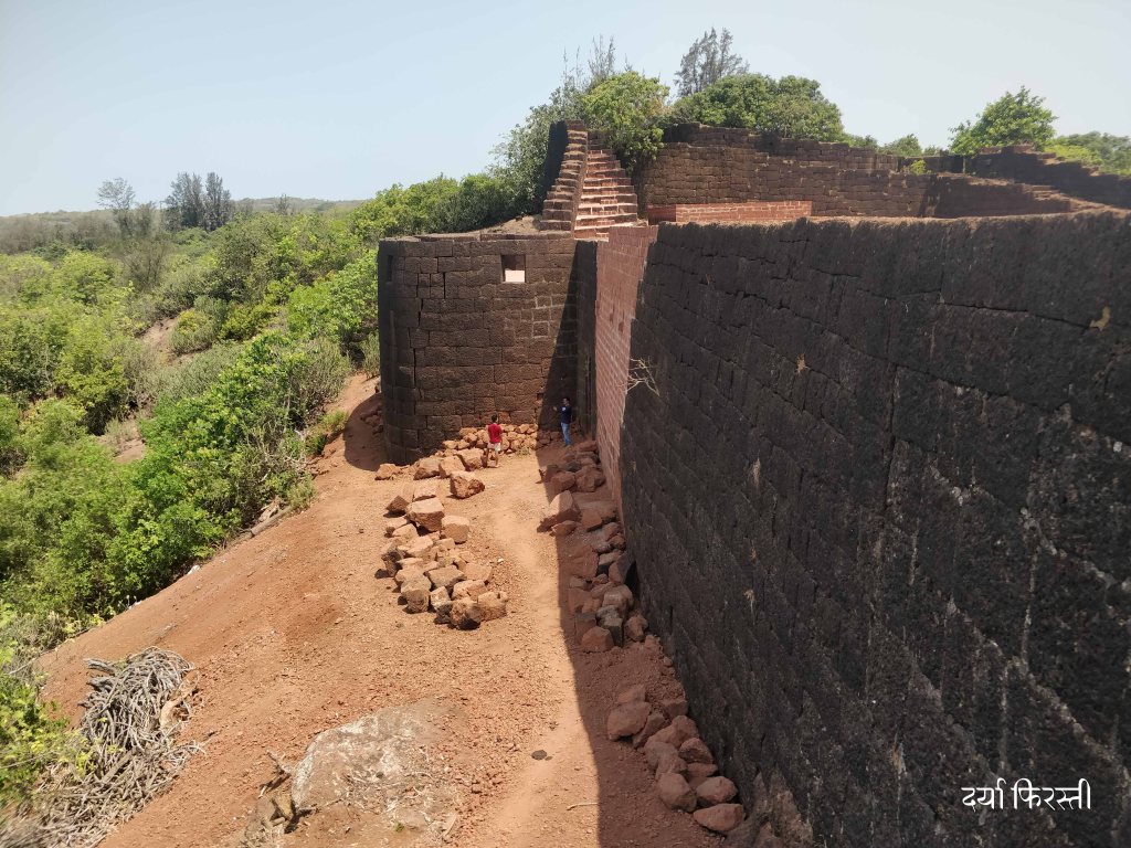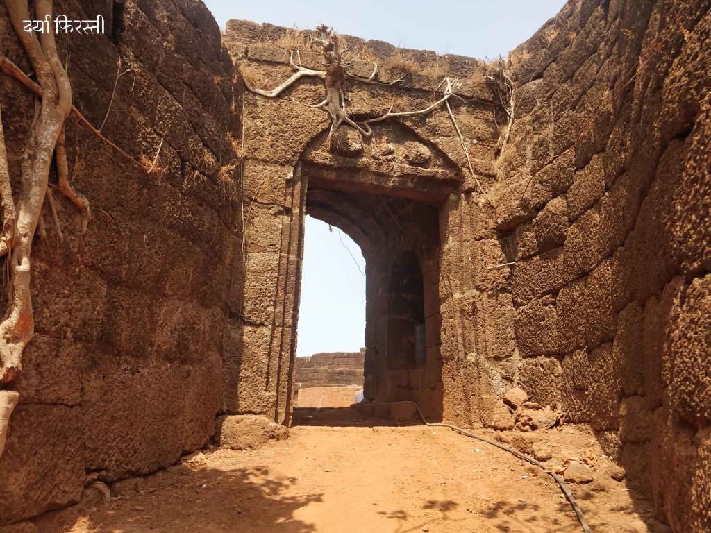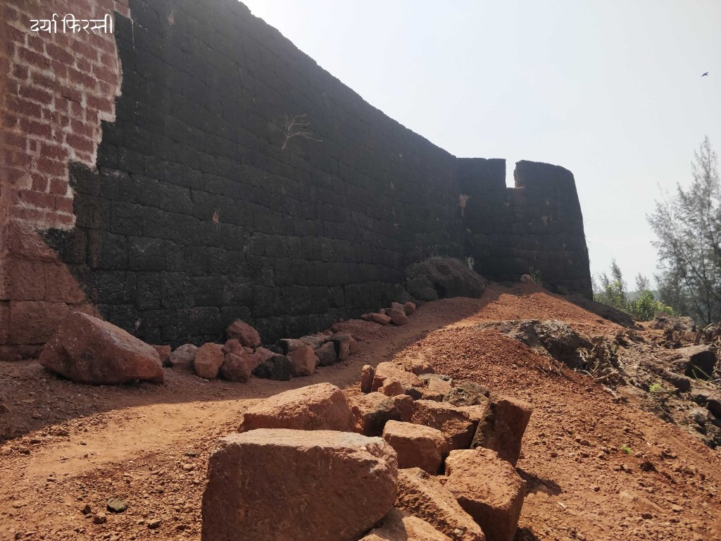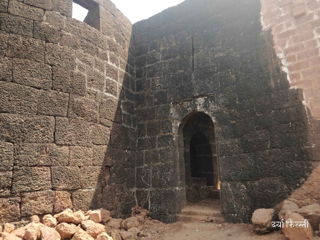 किल्ल्याच्या पश्चिम बाजूला सागराकडे उघडणारा दरवाजा आहे. इथं तटबंदी ढासळली होती, पण पुरातत्व खात्याने ती बांधून काढली आहे. मी गेलो तेव्हा इथं संवर्धनाचं काम सुरु होतं. दरवाजातून बाहेर पडून ही तटबंदी आणि दाराचे रेखीव बांधकाम नीट पाहता येते.