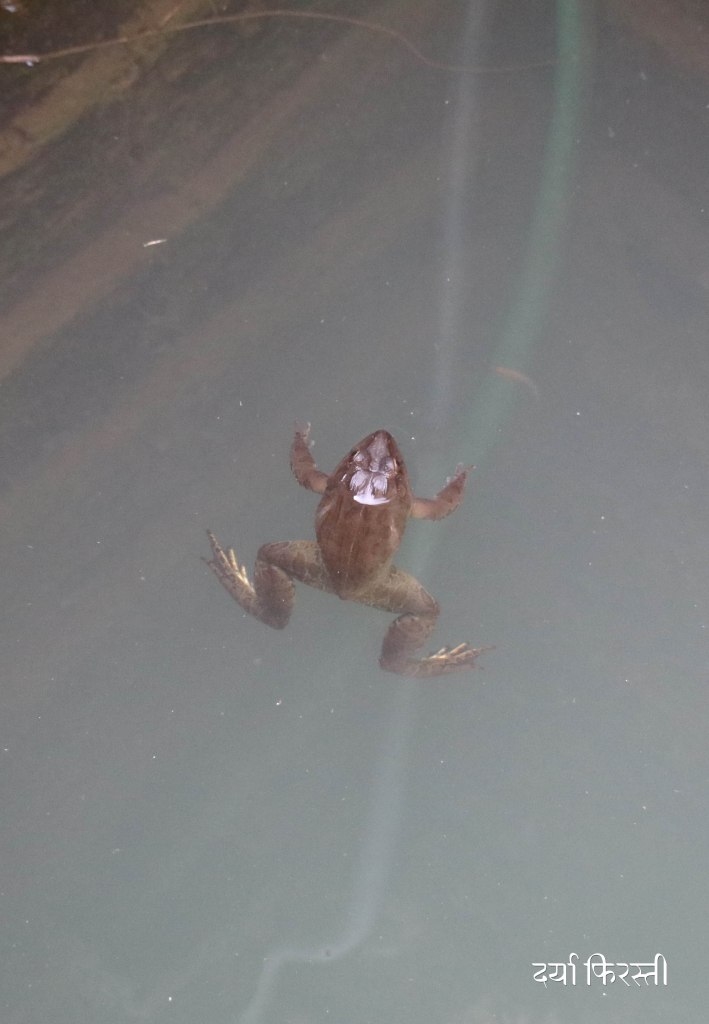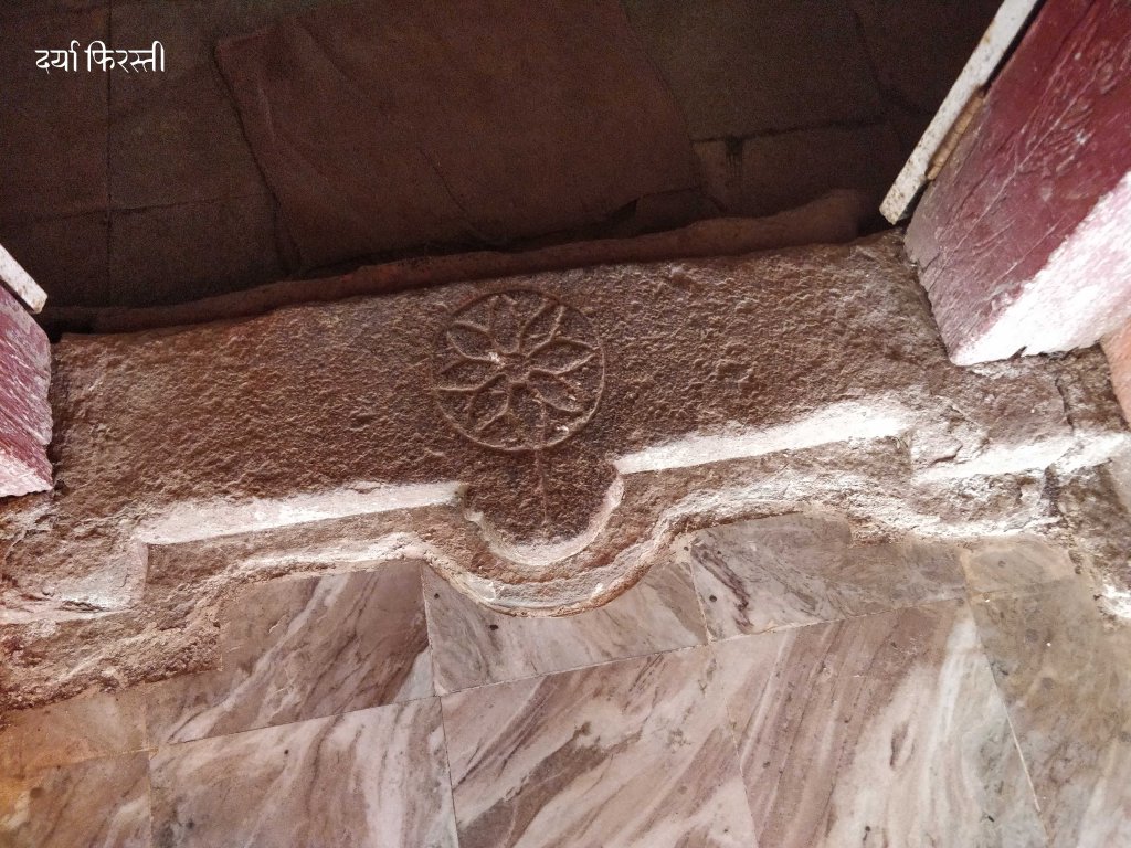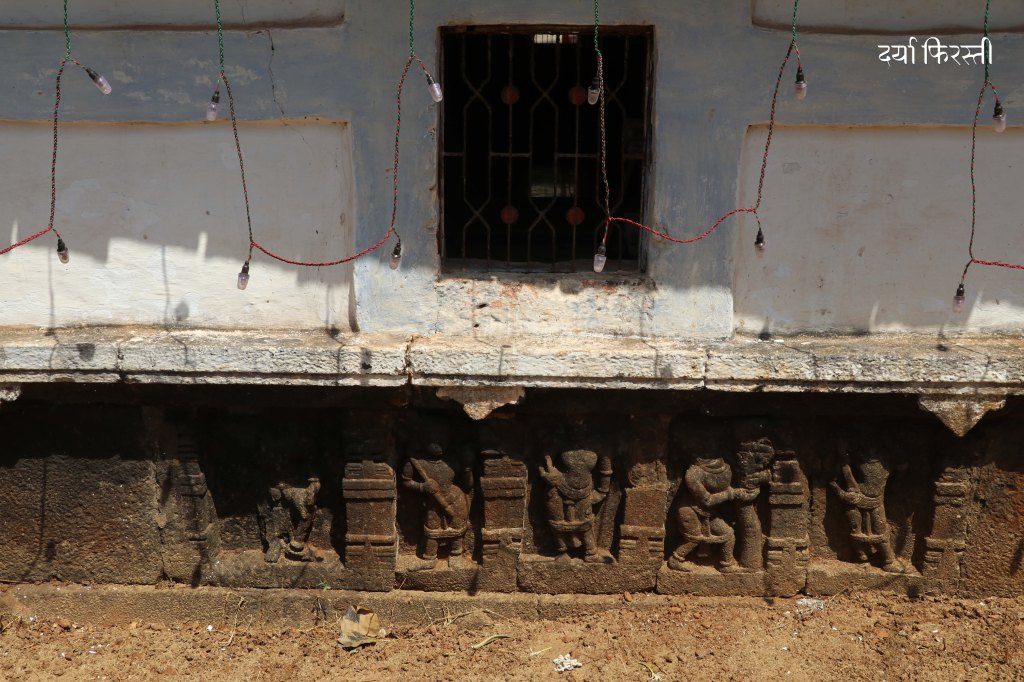 इथं बाजूलाच अगदी रेखीव पुष्करिणी आहे. असे म्हणतात की यातील पाणी कधीही आटत नाही. मला तिथं एक लठ्ठ बेडूक मस्तपैकी डुंबताना दिसला. हा बेडूक कोणत्या प्रजातीचा असावा असे कुतूहल माझ्या मनात निर्माण झाले! कोणाला माहिती असेल तर नक्की कळवा. या मंदिराचे एक खास वैशिष्ट्य म्हणजे बहुतेक मंदिरांच्या प्रवेशद्वारात गणेशपट्टी असते. इथं मात्र मला त्या स्थानी शिवलिंग कोरलेलं दिसलं.
