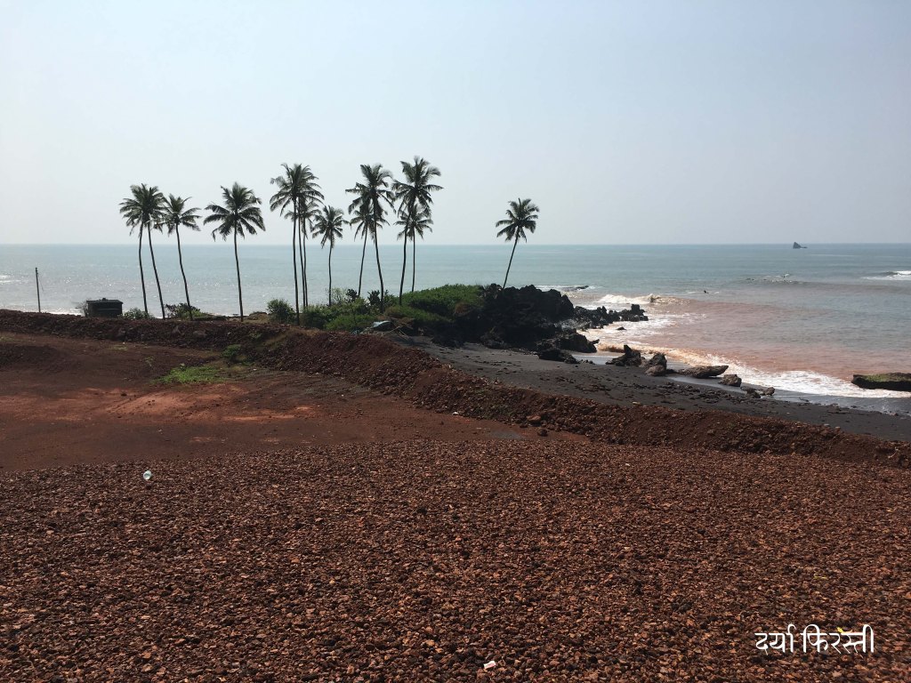 मंदिराच्या मागे चालत समुद्राकडे गेले की तांबूस माती असलेला समुद्रकिनारा आणि त्यावर उभे असलेले माड दिसतात. भरती असेल तेव्हा इथं लाटांचं नृत्यही पाहायला मिळते. इथली माती खनिजांनी भरलेली असल्याने तिला असा तांबडा रंग आलेला आहे. निसर्गाचं हे देखणं रूप आणि तिथेच बाजूला माणसाने केलेली खाणकामाची गर्दी पाहून आत्मपरीक्षण करावंसं वाटतं. पण केवळ उद्योग धंद्यांना विरोध करणे पुरेसे नाही. आपली जीवनशैली पर्यावरण पूरक आहे का याचा आपण सगळ्यांनीच विचार करायला हवा.