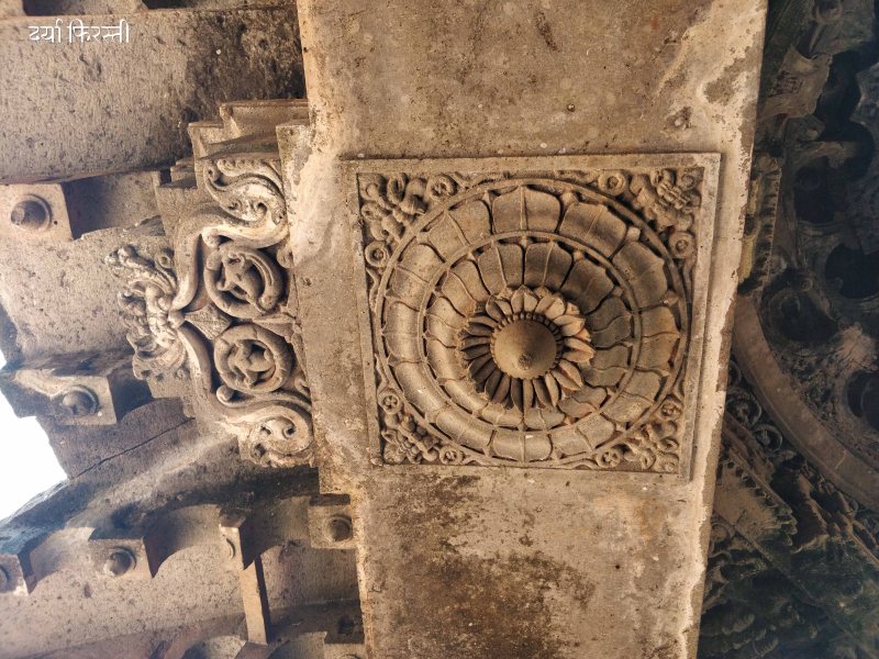 मंडपाच्या करोटक वितानाच्या बाजूला शेषशायी विष्णू दिसतो. त्याची दृष्टी कोरीव दशावतारांकडे आहे असं भासतं. समुद्र मंथन, यशोदा दधि मंथन असे प्रसंग इथं कोरलेले दिसतात. इथली करोटक वितानाची रचना अहमदनगरच्या ताहकरी मंदिराशी साधर्म्य असलेली आहे असं ज्येष्ठ पुरातत्व शास्त्रज्ञ गो. ब. देगलूरकर सांगतात.