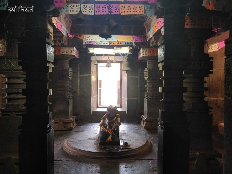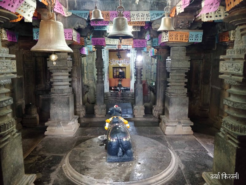 दहा चौरस मीटर आकाराचा मुखमंडप मग पुढे अंतराळ आणि नंतर गर्भगृह अशी मंदिराची साधारण रचना आहे. मंदिर हे जोत्यावर बांधलेले असल्याने तीन बाजूला पायऱ्यांची सोय केलेली दिसते. या पायऱ्या चढून गेल्यावर जी अर्धमंडपाची जागा येते तिथं वर्तुळाकार शिळा कोरलेल्या आहेत. अप्रतिम दगडी झुंबरे इथं दिसतात. वर्तुळाकार शिळांना स्थानिक पराती म्हणतात. अशा एकंदर पाच पराती मंदिरात असून पाच पांडवांच्या जेवणाची ती सोय होती अशी दंतकथा प्रचलित आहे.