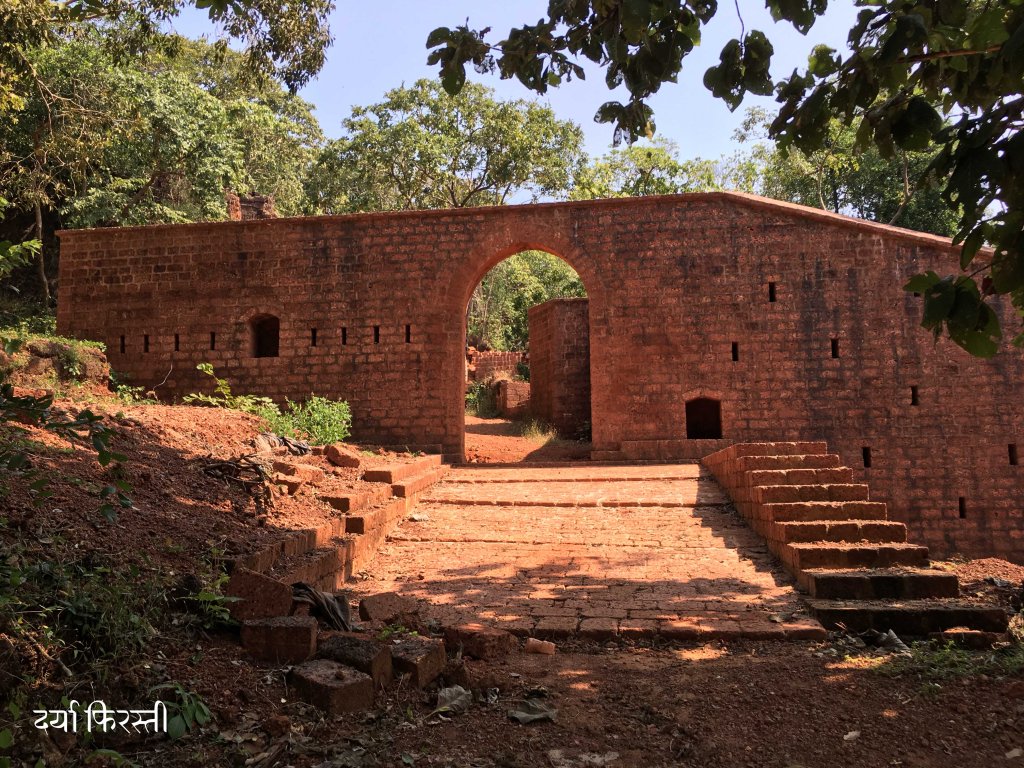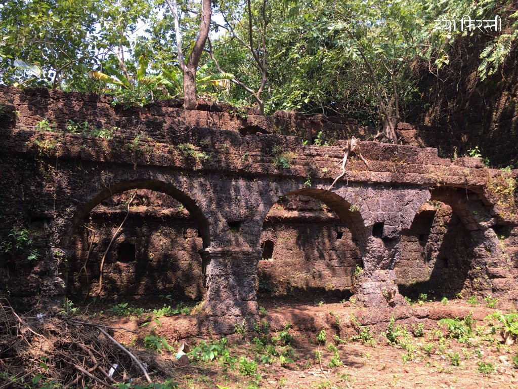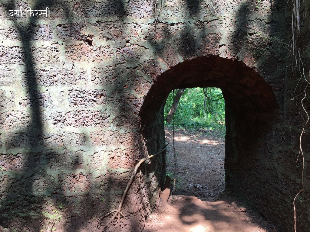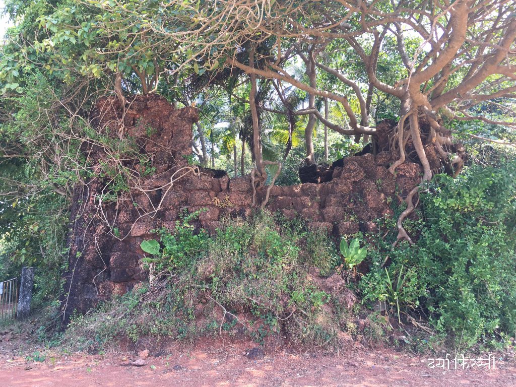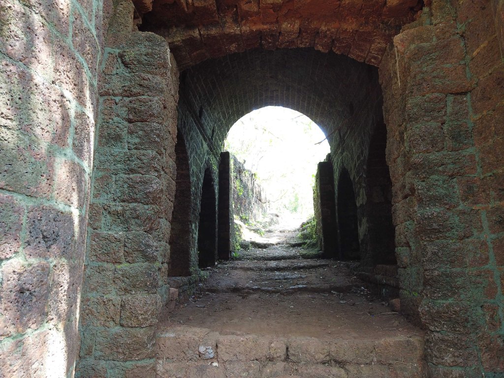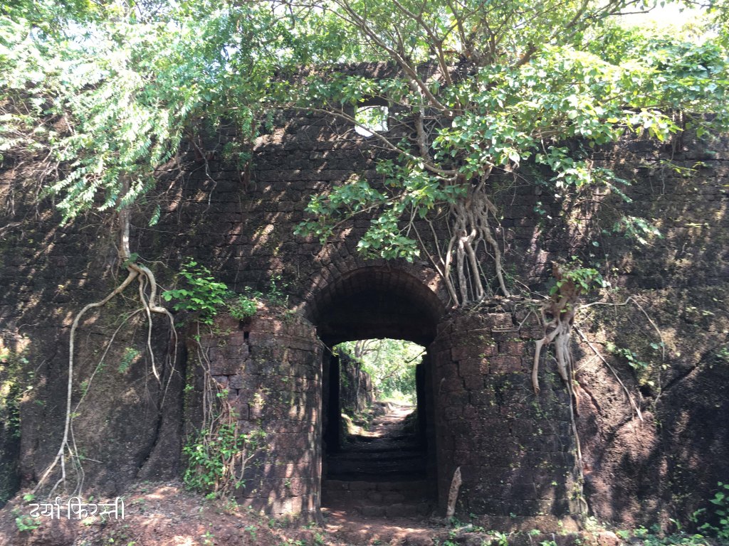 किल्ल्यात मी गेलो असताना बराच झाडोरा माजला होता त्यामुळे रेडीच्या खाडीवर नजर ठेवणारा बुरुज काही सापडला नाही. पण वाड्यासारखे बांधकाम, त्याला जोडणाऱ्या भिंती, दरवाजे यातून हिंडताना मन इतिहासाच्या टाइम मशीनची फिरस्ती करत होतं