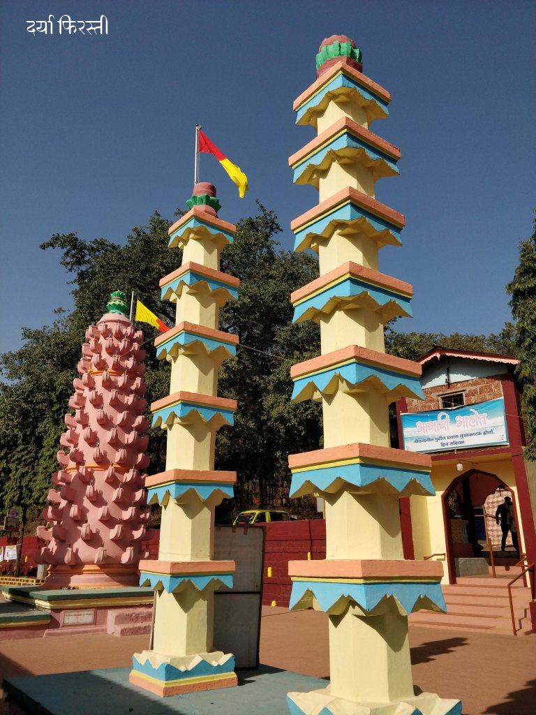 कोकणातील मंदिराच्या दीपमाळा नेहमीच खूप आकर्षक पद्धतीने बांधलेल्या असतात. इथेही त्या आवर्जून पाहाव्यात अशाच सुंदर आहेत. पेशवेकालीन बांधकामातील महिरपी आकाराच्या कमानीही नक्की पाहाव्यात.