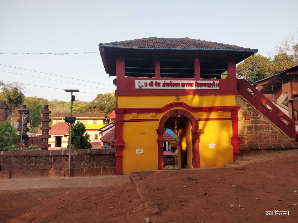 मंदिराच्या चारही बाजूला दगडी तटबंदी असून दरवाजावर कौलारू नगारखाना बांधलेला आहे. त्यातून मंदिरात प्रवेश करायचा. आणि कोकणी पद्धतीच्या दीपमाळांचा दिमाख पाहायचा. मी जेव्हा इथं गेलो होतो तेव्हा मागे निळ्याशार स्वच्छ आकाशात दिवसाही स्पष्ट दिसणाऱ्या चंद्रबिंबाने माझे लक्ष वेधून घेतल्याची आठवण आहे.