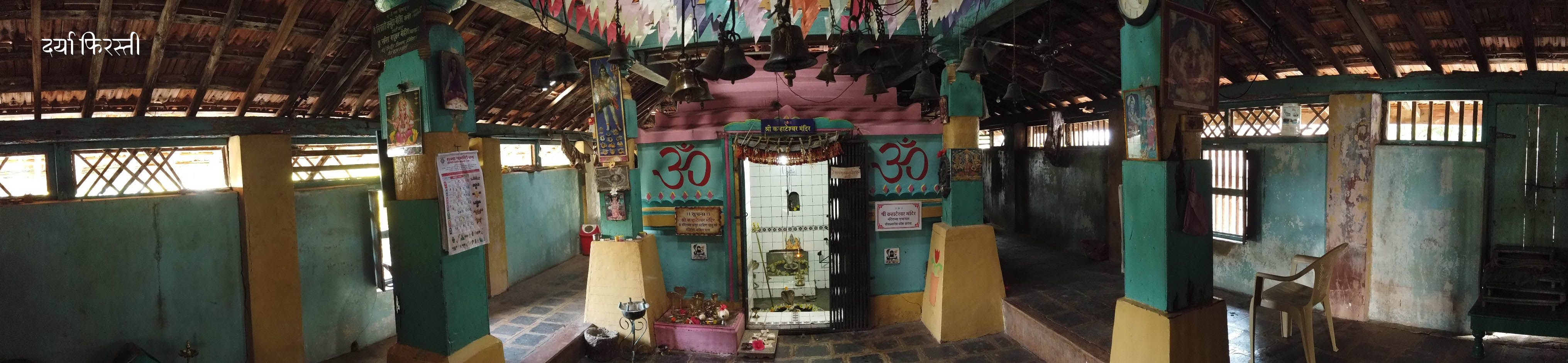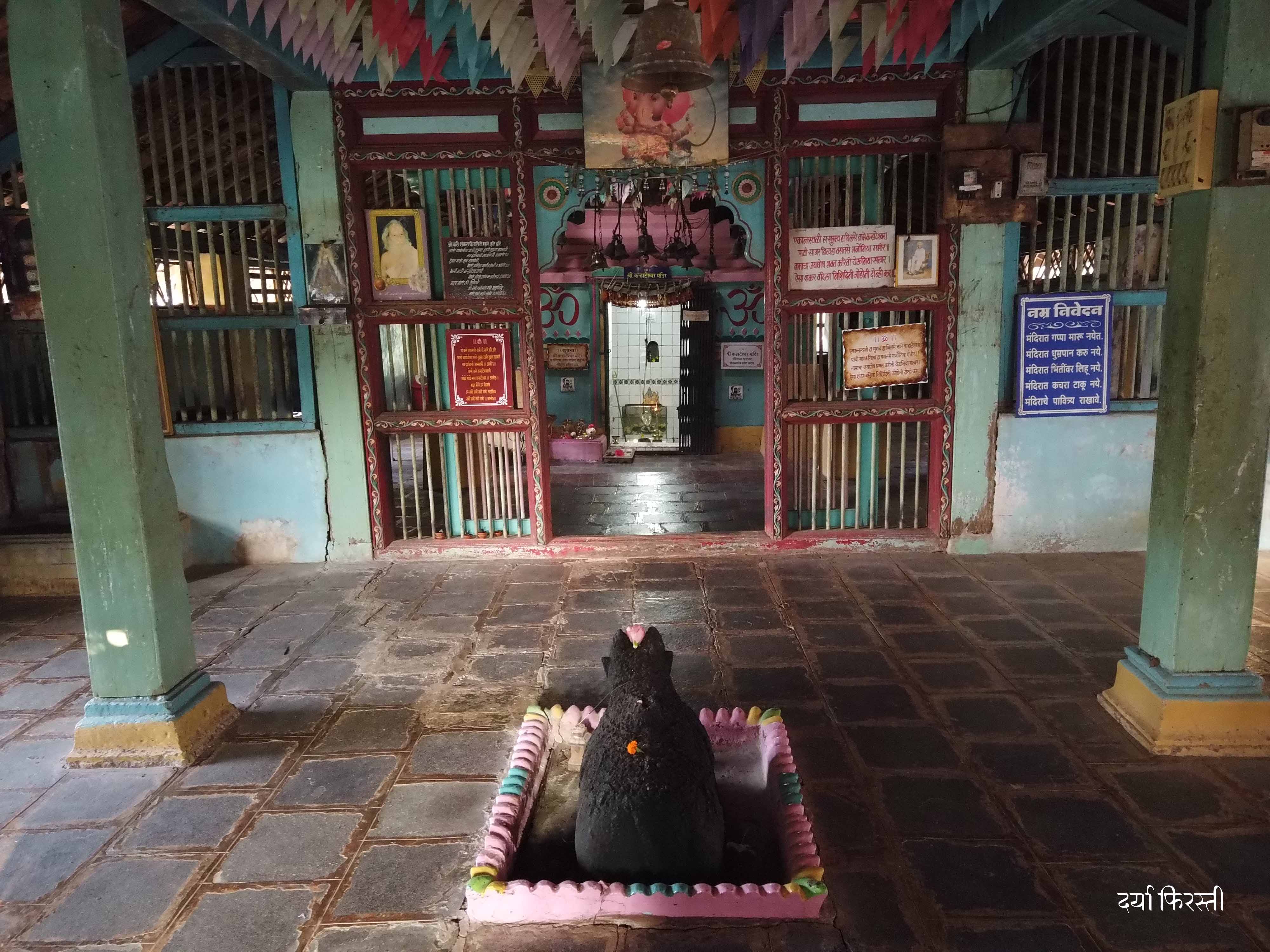 अथांग निळ्या सागराला हजारो वर्षे सोबत देत उभा असलेला दोन अडीचशे फूट उंच डोंगर आणि त्या डोंगराच्या माथ्यावर असलेलं शिवालय. मंदिरांच्या बाबतीत स्थानमाहात्म्य हा शब्द आपण अनेकदा ऐकला असेल.. त्याची प्रचिती घ्यायला इथं म्हणजे कऱ्हाटेश्वराला यायला हवं. कोकणातील एखाद्या साध्याभोळ्या माणसाचं घर असावं तसं दिसणारं हे छोटंसं कौलारू मंदिर आणि त्याच्यापुढं उभी असलेली आखीव रेखीव दीपमाळ. मंदिराच्या परिसरात असलेल्या चाफ्याच्या फुलांचा दरवळ एक सुखद अनुभव देत असतो. आणि सभामंडपात गेलं की गुरवाने लावलेल्या उदबत्तीचाही सुगंध आपलं लक्ष वेधून घेतो.