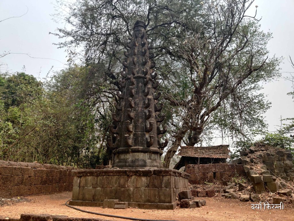 मंदिराला चारही बाजूंना जांभा दगडाची तटबंदी असून एक अतिशय भव्य आणि उंच दीपमाळ इथं दिसते. ही दीपमाळ निदान २०-२२ फूट तरी उंच असावी. मंदिराला संरक्षण देण्यासाठी बांधलेलं चिरेबंदी बांधकाम आता ढासळू लागलेलं असलं तरीही त्याच्या मूळ भव्यतेची कल्पना आजही येते.