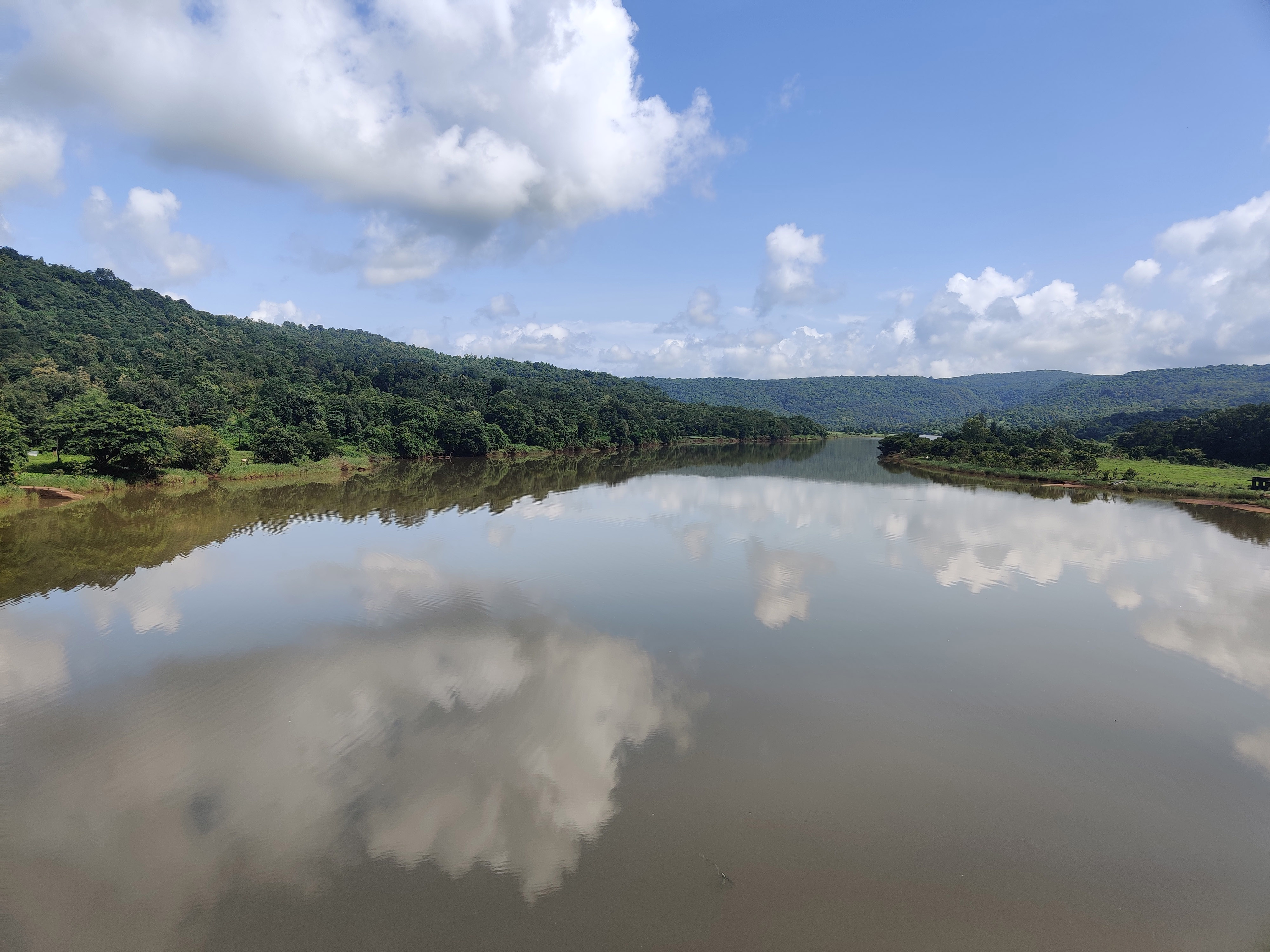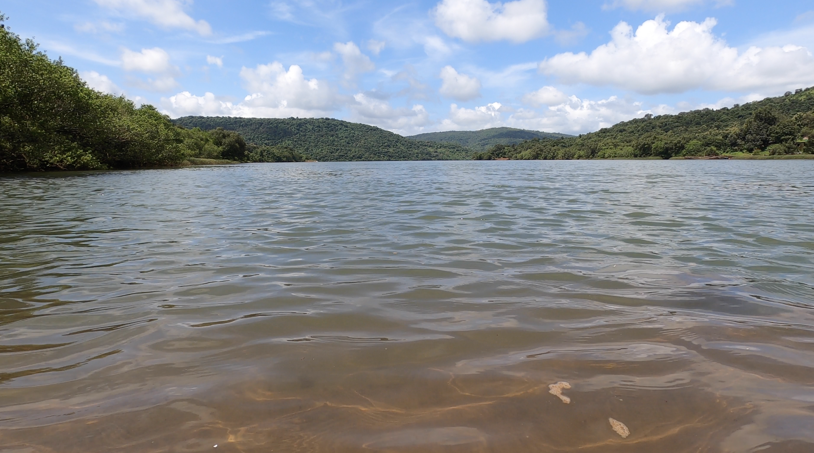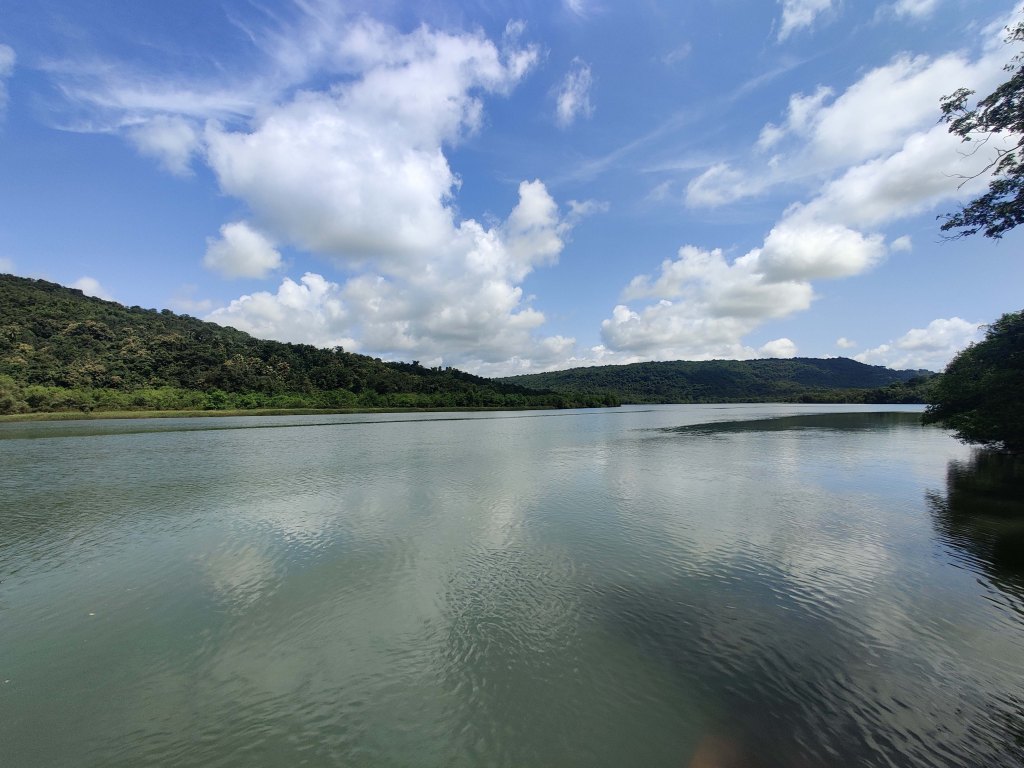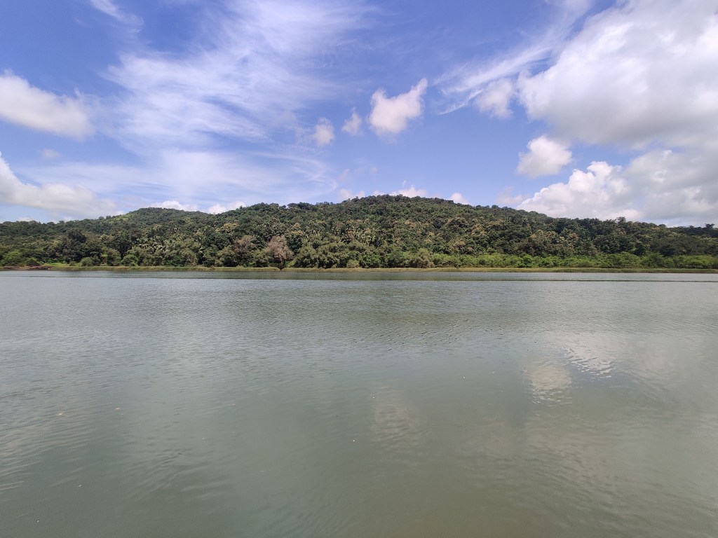 काही जण या ठिकाणाला तीन नद्यांचा संगम म्हणतात तर काही म्हणतात तीन खाड्या एकत्र आल्या आहेत. खरे म्हणजे खाडी आणि नदी काही वेगळं नाही. पण भरतीच्या वेळेला जिथवर समुद्राचे खारे पाणी नदीत शिरत असेल तेवढ्या भागाला खाडी म्हणत असावेत. इथं पाणी स्तब्ध वाटावे इतके संथ वाहत होते.. त्यामुळे निसर्गाने आकाशात काढलेल्या चित्राचे प्रतिबिंब नदीच्या पाण्यात स्थिरावले होते. नदीच्या काठाजवळ तिवरांचे रान होते तर परिसरातील टेकड्यांवर हरित जंगले नटली होती. दूर डोंगरावर ढंगाची सावली पडली होती.