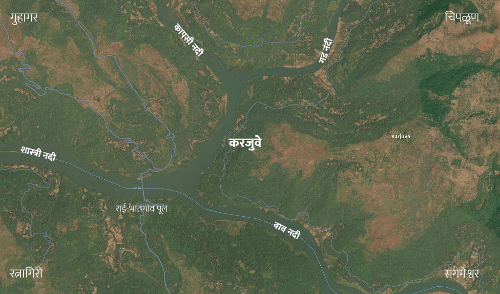या जागेची अजून एक विशेष गंमत म्हणजे या संगमाच्या चार दिशांना रत्नागिरी जिल्ह्यातील चार तालुके आहेत.. गुहागर, रत्नागिरी, संगमेश्वर आणि चिपळूण हे ते चार तालुके … त्यांच्या सीमारेखा इथंच कुठेतरी एकत्र येत असाव्यात. २००९च्या आसपास प्रथमच मी पुणे-दापोली-रत्नागिरी-विजयदुर्ग-मालवण-वेंगुर्ला-तेरेखोल असा प्रवास होंडा युनिकॉर्न मोटरसायकल वर केला होता. तेव्हा तवसाळ-जयगड फेरी सेवा सुरु झालेली नव्हती त्यामुळे राई-भातगाव पुलाने मी जयगड मार्गे गणपतीपुळे गाठले होते. गुहागर ओलांडले तेव्हा अंधार पडायला लागला होता.. मिट्ट काळोखात रानातून केलेला तो ५० किमी प्रवास मी कधीही विसरू शकत नाही.. एक माणूस नजरेला पडलं नाही.. मोटरसायकल च्या दिव्याच्या झोतात लंगूर, हरीण, कोल्हे दिसले तेवढीच काय ती सोबत