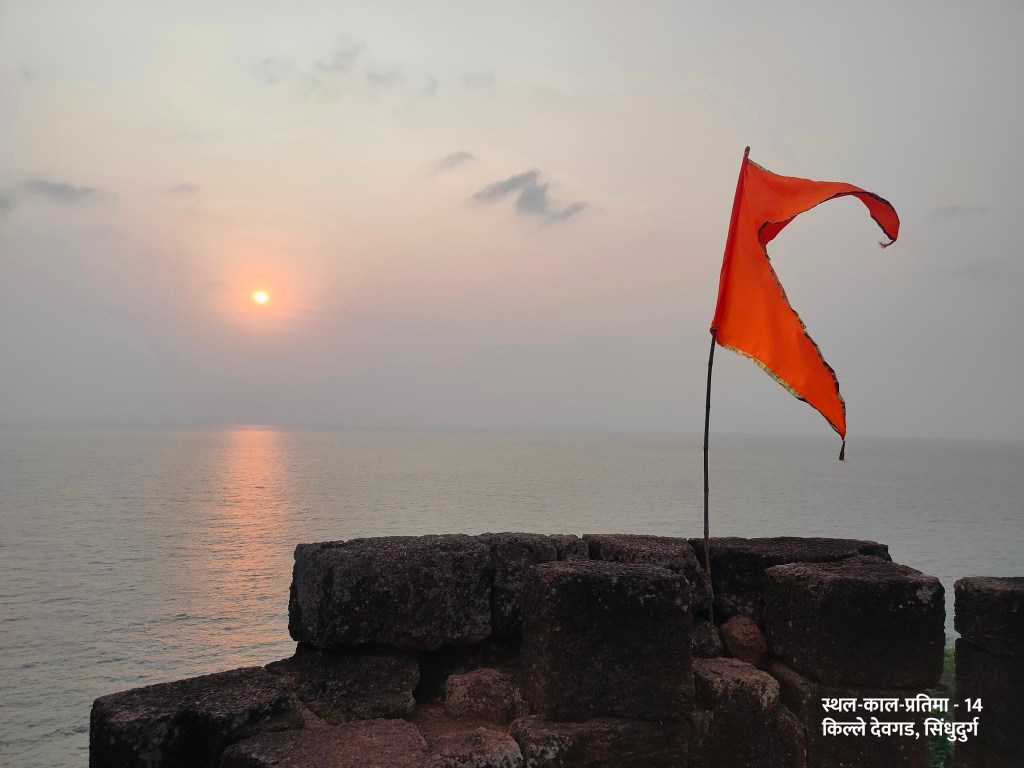 पण दिवसाचा शेवट मात्र अजून एका खास अनुभवाने समृद्ध झाला. देवगड किल्ल्याच्या पश्चिम तटबंदीवर येऊन बसलो तेव्हा सूर्यनारायण अस्ताला जाण्याच्या तयारीत होता. बुरुजावर मराठ्यांचा भगवा जरीपटका दिमाखात फडकत होता.. रांगड्या जांभा खडकात बांधलेल्या बुरुजामागे समुद्रानेही भगवा धारण केलाय असं भासत होतं. छत्रपती शिवरायांनी उभ्या केलेल्या स्वराज्याच्या शिलेदारांनी दिल्लीपलीकडं जाऊन भारताच्या उत्तर सीमेचे रक्षण केले आणि इथं पश्चिम सागरतटावर आक्रमण करू पाहणाऱ्या आरमारी शत्रूनाही वेसण घातली. इथल्या पाण्यात पोर्तुगीज, डच, इंग्लिश, सिद्दी सगळ्यांनीच मराठा आरमाराचा तडाखा खाल्ला आहे. कान्होजींच्या पराक्रमाने अजरामर झालेला कुलाबा असो किंवा घेरिया आणि शिवरायांच्या साक्षेपी धोरणातून घडलेला सिंधुदुर्ग असो वा खांदेरी.. मराठ्यांच्या इतिहासाच्या एका सोनेरी अध्यायातलेच हे मानकरी. हरहर महादेव गर्जना करत वेगाने लाटांवर स्वार होऊन आलेलं एखादं मराठा गलबत, पाल, शिबाड समोर दिसेल की काय असं मला क्षणभर वाटलं. एखाद्या युरोपियन जहाजाच्या वरामीला असलेल्या तोफा टाळत तांडेल वेगाने आपलं शिबाड जवळ नेतील.. मग युरोपियन लोकांकडून पळवलेल्या त्यांच्याच तोफा त्यांच्यावरच डागत हल्ला करतील. हेलकावे खाणाऱ्या शिबाडांवरील या तोफा आळीपाळीने आग ओकत शत्रूच्या जहाजाला खिंडार पाडतील आणि मग कोळी, खारवी, दालदी समाजातील मराठा योद्धे आपल्या बाकदार समशेरी घेऊन निकराचा वार करतील. असं सगळं दृश्य डोळ्यासमोरून सरकलं. खरंच या पुरातन वास्तू म्हणजे टाइम मशीनच असतात.