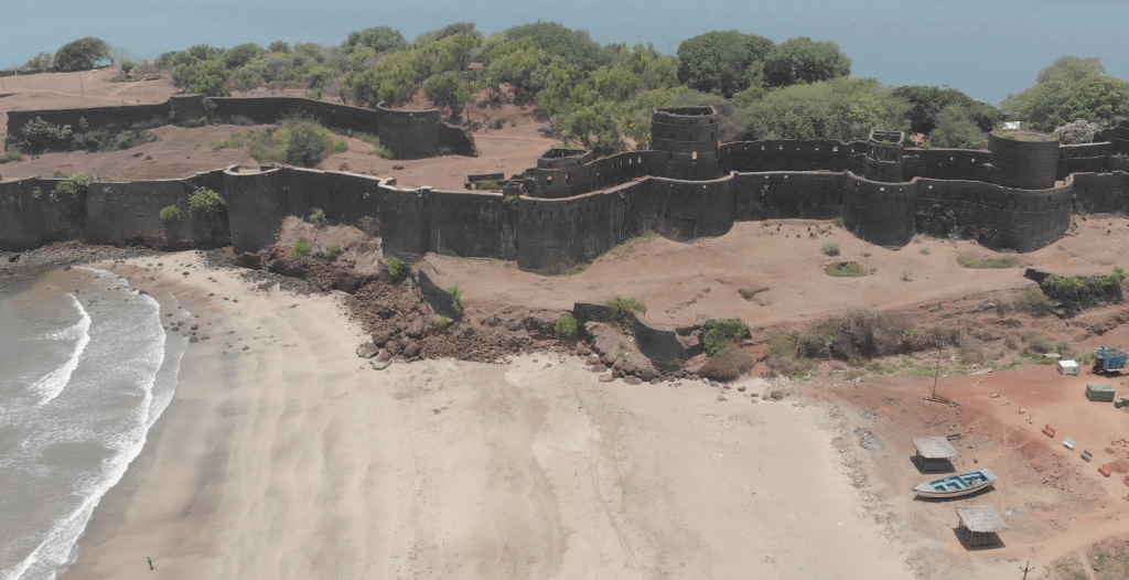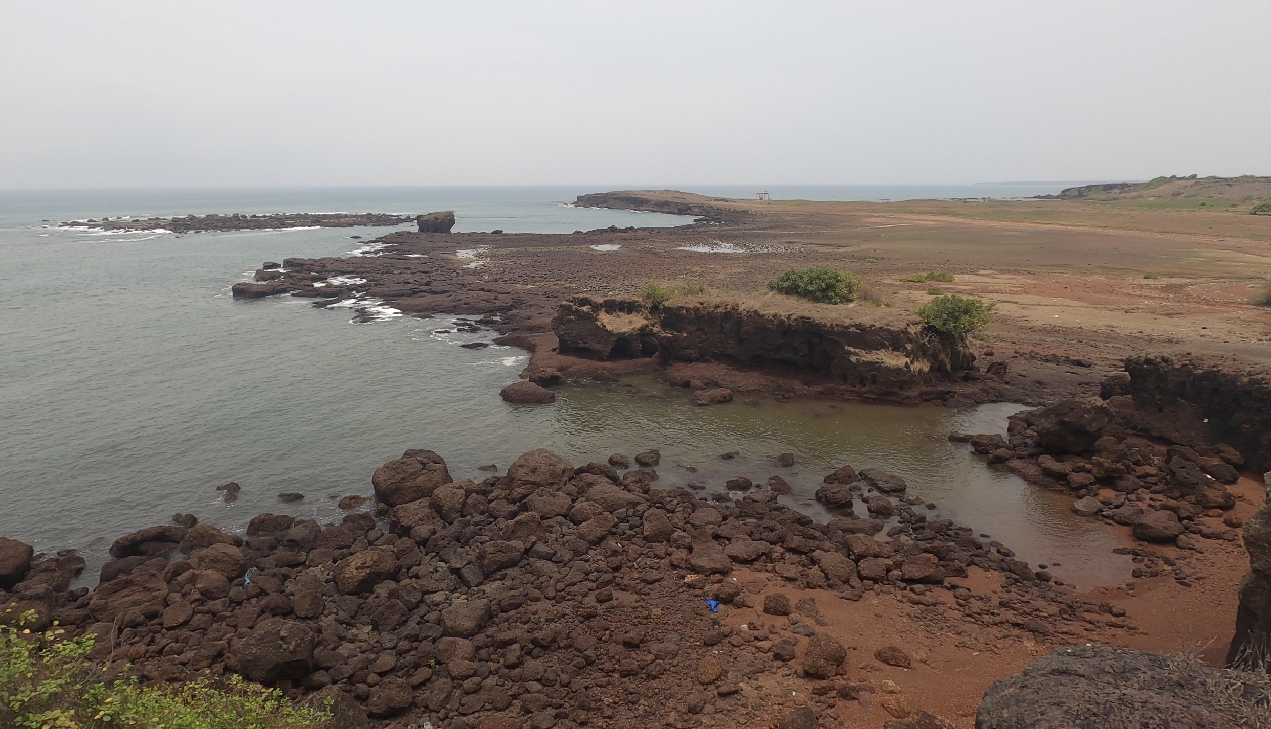 या खडकाळ किनाऱ्याच्या अगदी जवळ म्हणजे सुमारे मीटर पर्यंत गाडी येते. इथूनच पुढं आपण हत्ती महाल बंधारा पाहू शकतो जो शिवकालीन आहे असे स्थानिकांचे म्हणणे आहे. त्याबद्दल अधिक माहिती घेऊन पुन्हा केव्हातरी सविस्तर ब्लॉग लिहीन. आता आपण पाहणार आहोत विजयदुर्ग किल्ल्याचा समुद्रकिनारा.. इथं उभं राहून घेरियाची दक्षिण तटबंदी पाहताना छत्रपती शिवाजी महाराजांच्या दुर्ग वैज्ञानिक दृष्टीची महती कळते.