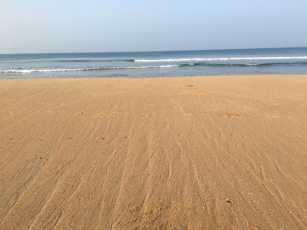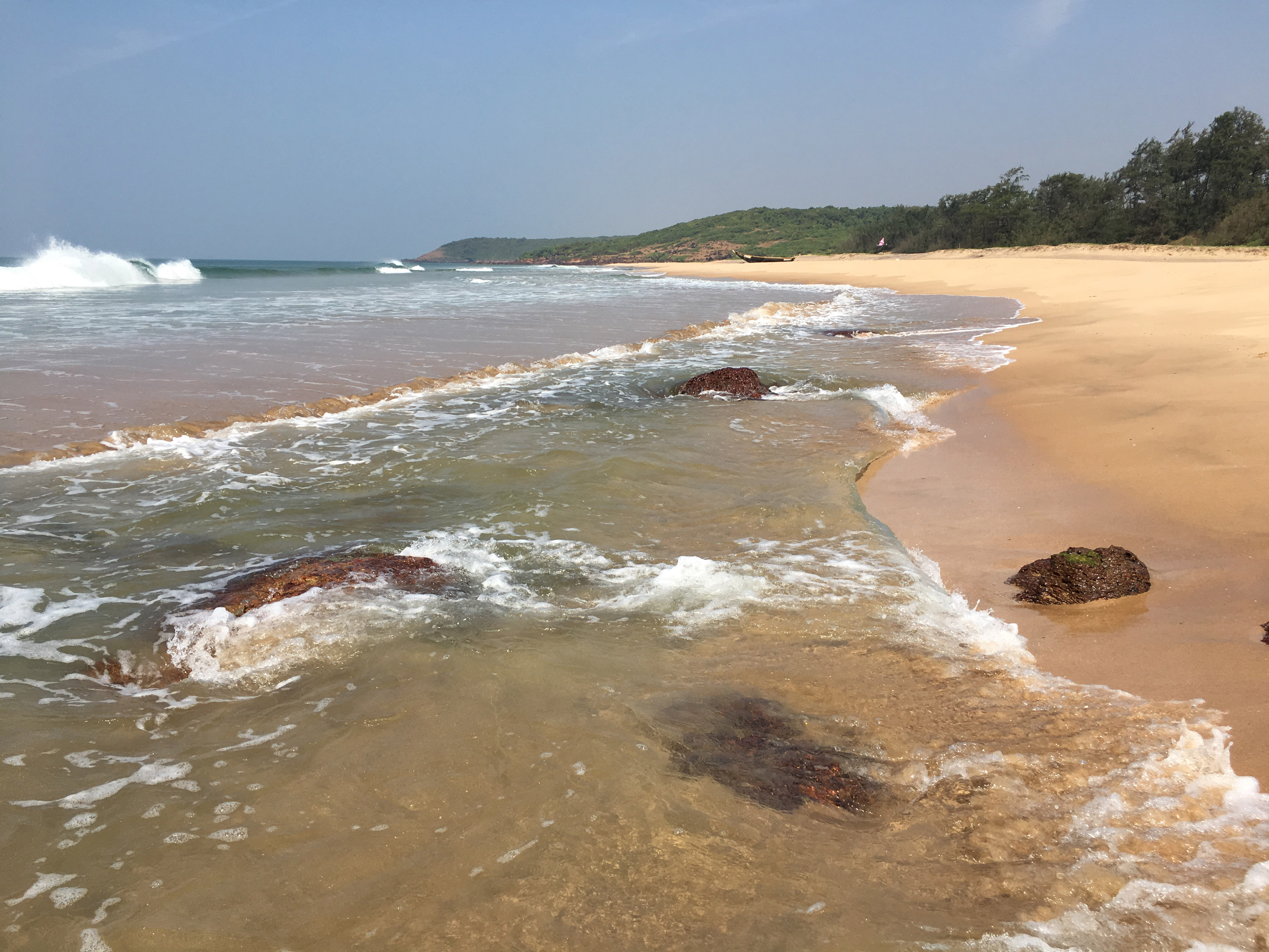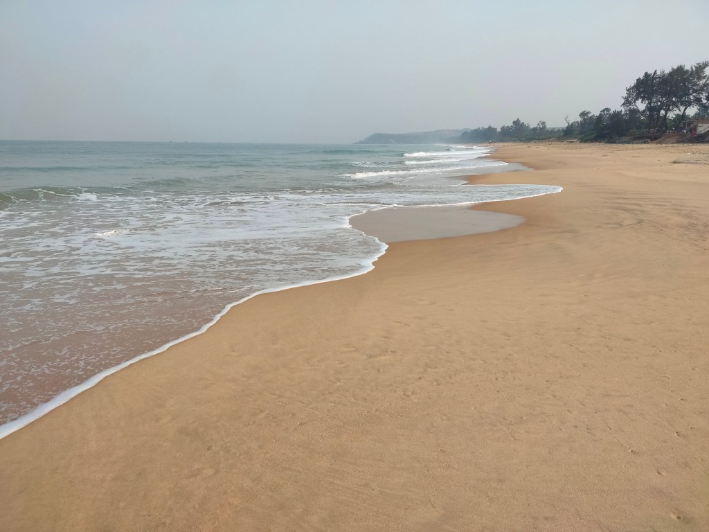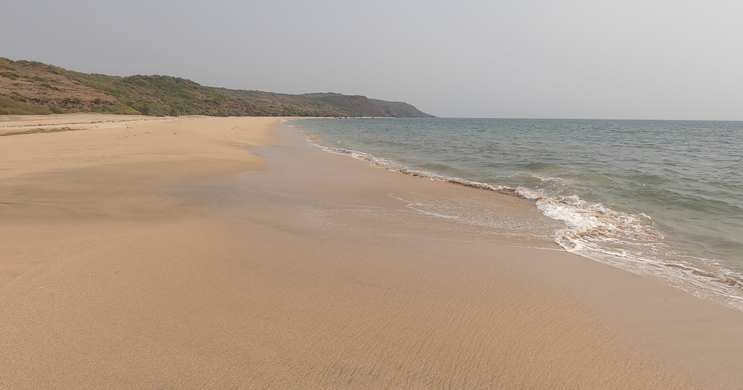 आसमंत जर धुक्याने भरलेले नसेल तर विविध रंगांची उधळण इथं आपण पाहू शकतो.. वाळू अगदी पांढरी शुभ्र नसून थोडीशी कॅरॅमल रंगाची आठवण करून देणाऱ्या छटेने नटलेली आहे.. समुद्राच्या पाण्याचा रंग कसा वर्णावा? निळ्या हिरव्या रंगाच्या हजारो गडद फिकट छटा आणि फेसाळलेल्या लाटांच्या सफेदीची किनार.. आणि त्या रंगांना बदलत जाणारी लाटांची आवर्तने.. अशा ठिकाणी अनवाणी चालता चालता मखमली वाळूची ऊब आणि थंडगार पाण्याचा निववणारा स्पर्श अनुभवत तासभर कसा जातो कळतही नाही.. किनाऱ्याच्या उत्तर टोकाला देवगडचा डोंगर आणि त्यावर बांधलेल्या पवनचक्क्या आपल्याला खुणावत असतात.