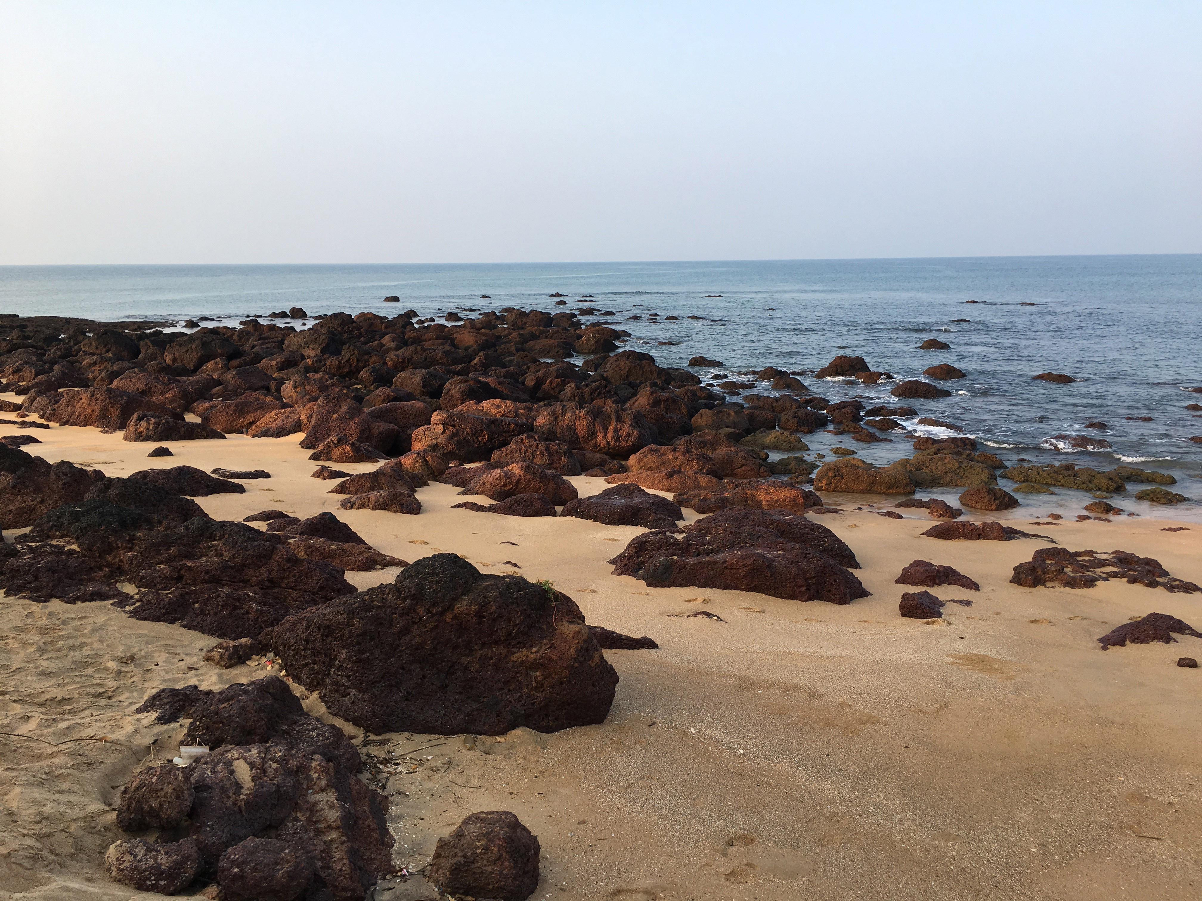 त्यानंतरचा किनारा आपल्याला शोधावा लागतो. हा आहे कालवशी चा किनारा. इथं गाडी आणता येत नाही. चौंडेश्वरी मंदिरानंतर डावीकडे जाणाऱ्या कच्च्या रस्त्याने दोन किलोमीटर ची पायपीट करून आपण जांभा खडकातील पायऱ्यांपर्यंत पोहोचतो. तिथून अडीचशे फूट खाली उतरलो की आपण दोन किमी लांब समुद्रकिनाऱ्यावर येतो.