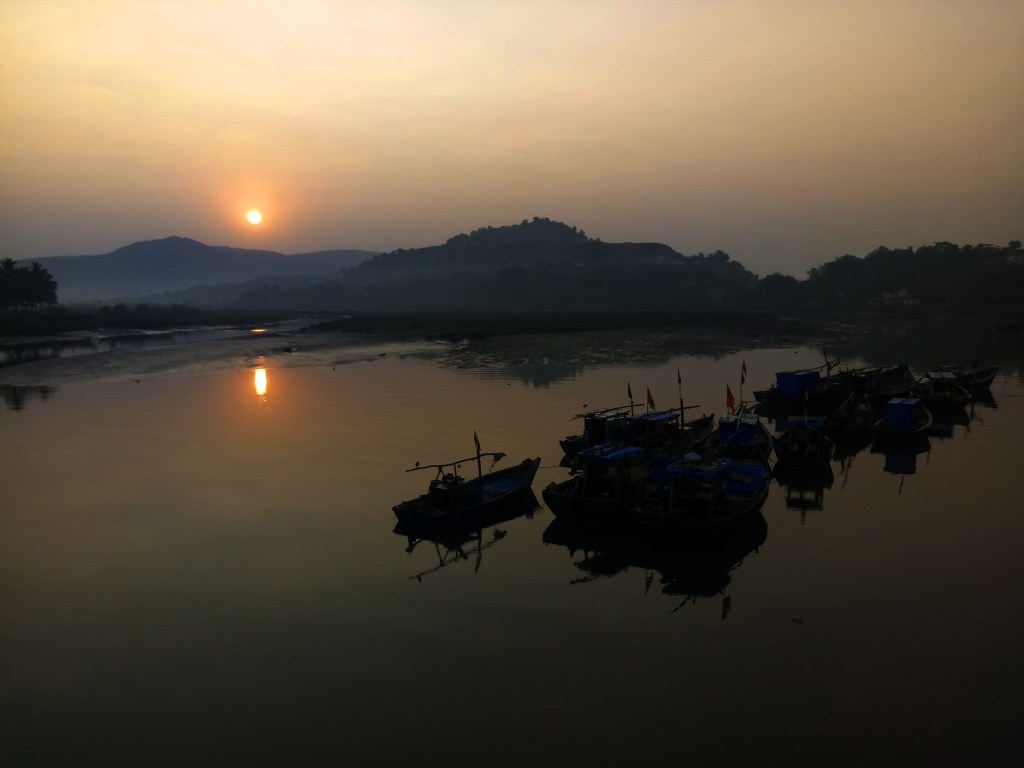 मुरुड गावचा समुद्रकिनारा ओलांडून दक्षिण टोकाला आले की एकदरा खाडीवरील पूल येतो. आदल्या दिवशी मुरुड-जंजिरा आणि पद्मदुर्ग किल्ल्याचे दर्शन करून झालं होतं त्यामुळे पहाटेच पुढं निघालो होतो. सामराजगड शोधून मग पुढं कुडे मांदाडच्या दिशेने जायचं असा बेत होता. मुरुडमधील विवेक मसाल यांच्या होम स्टे मध्ये छान आराम झाला होता.. वाफाळलेला चहा घेऊन गाडी काढली आणि एकदरा पुलावर आलो तेव्हा खाडीत आळोखेपिळोखे देत नांगरून पडलेल्या बोटी आणि नुकताच उगवून नारळीच्या बागांच्या वर आलेला सूर्यनारायण असा अद्वितीय देखावा पाहायला मिळाला.
