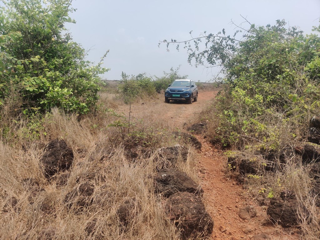 या ठिकाणी मी मागे एकदा म्हणजे ऑक्टोबर-नोव्हेंबर २०१९ च्या आसपासही आलो होतो परंतु अंधार पडायला लागला होता त्यामुळे किनाऱ्यापर्यंत जाऊन भटकता आले नव्हते. रामेश्वर मंदिराच्या मागे एक छोटासा झरा आहे.. त्यावर पूल बांधलेला असून तिथून पुढे पाव किमी डांबरी रस्ता आहे.. त्यानंतर आपण सड्यावर पोहोचतो आणि एक कच्ची गाडीवाट आपल्याला दिसू लागते. त्या पुलाजवळ जर झऱ्यापाशी उतरले तर एक जुना दगडी बंधारा पाहता येतो. हा शिवकालीन बंधारा असून इथं हत्ती आणले जात असं स्थानिक सांगतात. मला त्याबद्दल ऐतिहासिक माहिती मिळालेली नाही.. ती मिळाली की एक स्वतंत्र ब्लॉग लिहिता येईल. मी कच्च्या रस्त्याने घडीवाडी किनाऱ्याच्या सुमारे २०० मीटर अंतरावर आलो. मागच्या वेळी इथं टाटा नॅनो घेऊन आलो होतो. यावेळेस आमचा विद्युत रथ नेक्सन इव्ही इथं पार्क केला आणि किनाऱ्याकडे चालू लागलो