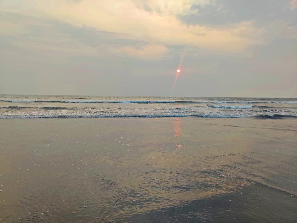 सूर्यास्ताला आता तासभर उरला होता त्यामुळे त्या दिवसाची सांगता किनाऱ्यावर बसूनच करायची असं मी ठरवलं होतं. दिवसभर चालून, शूट करून दमलो होतो. पाणी संपलं होतं. खिशात मूठभर शेंगदाणे होते ते खाल्ले आणि शरीराची बॅटरी थोडी चार्ज केली. इथं भेळेच्या गाड्या नव्हत्या आणि वॉटर स्पोर्ट्स साठी जमलेली गर्दी सुद्धा नव्हती.. जवळच रिसॉर्ट मध्ये उतरलेले काही पर्यटक समुद्रस्नान करत होते.. एकमेकांच्या प्रेमात आकंठ बुडालेली जोडपी सूर्यास्ताची किमया एकत्र पाहायला थांबली होती. पण किनारा निर्मनुष्य नसला तरीही शांत होता..