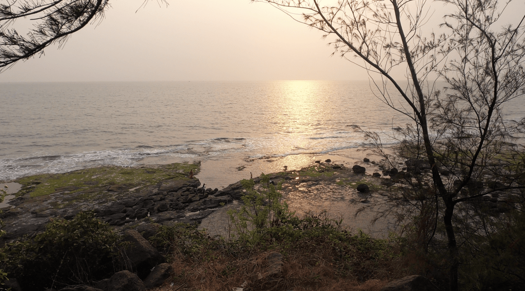 या टेकडीच्या मागे समुद्रकिनाऱ्यापाशी एक खडकाळ मंच आहे. तिथं पर्यटक, कोळी बांधव, ग्रामस्थ मुले असे सगळे जात असतात त्यामुळे तिथं एक चैतन्य मला जाणवलं. सूर्यनारायणाने आता आपले तेज समुद्रात अर्पण करायला सुरुवात केली होती. कोकण ही देवभूमी आहे. परशुरामांनी वसवलेली भूमी.. तितकीच निसर्गदेवतेने अगणित वर देऊन समृद्ध केलेली भूमी सुद्धा. इथं सूर्यास्त पाहताना सूर्य, समुद्र आणि मी हे तेच असलो तरीही अनुभव मात्र नवीन भासतो. त्यामुळे इथं भटकंती करत असताना निसर्गभक्तीच्या रसात आपण स्वतःला कधी अर्पण करून टाकतो ते कळतच नाही. हेच अद्वैत सहज साधणारी भूमी म्हणजे अपरान्त भूमी.