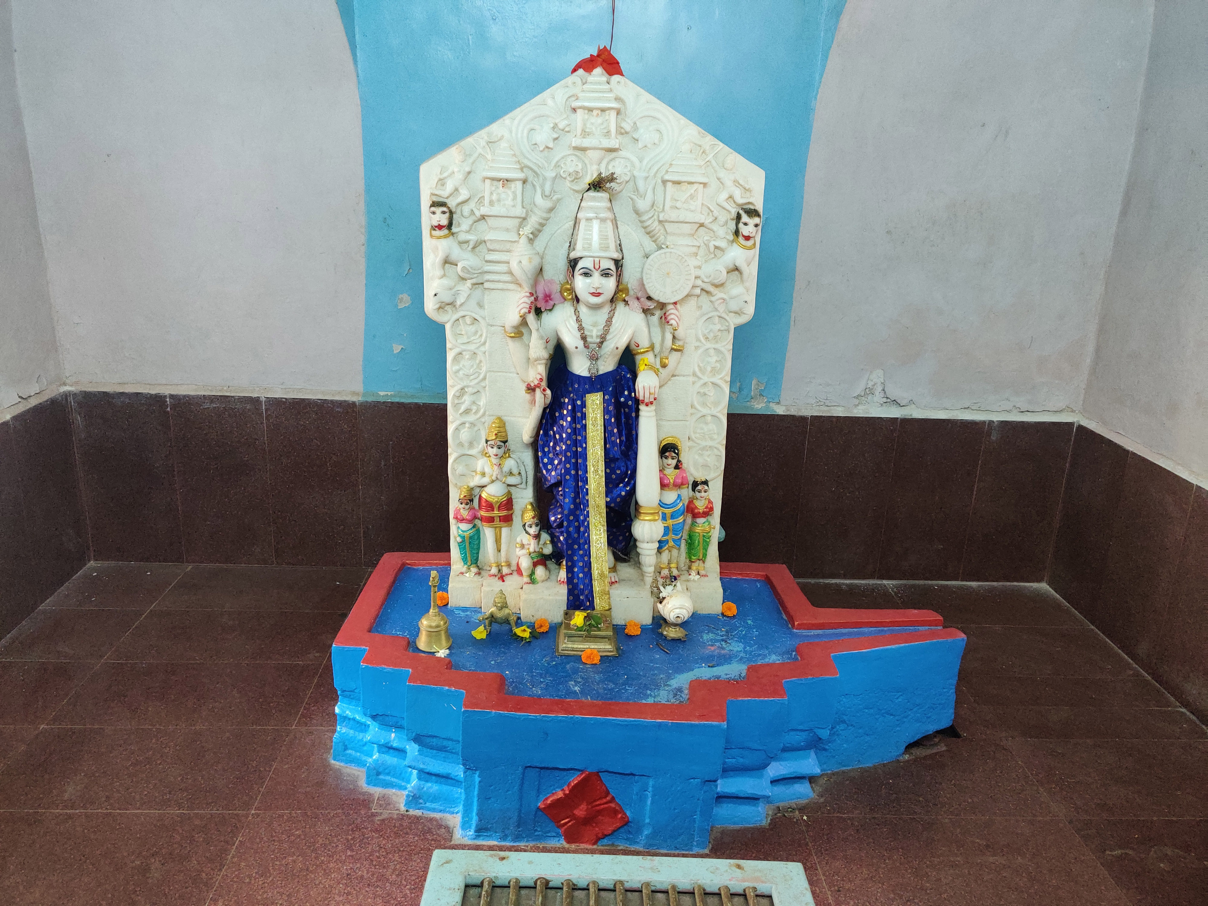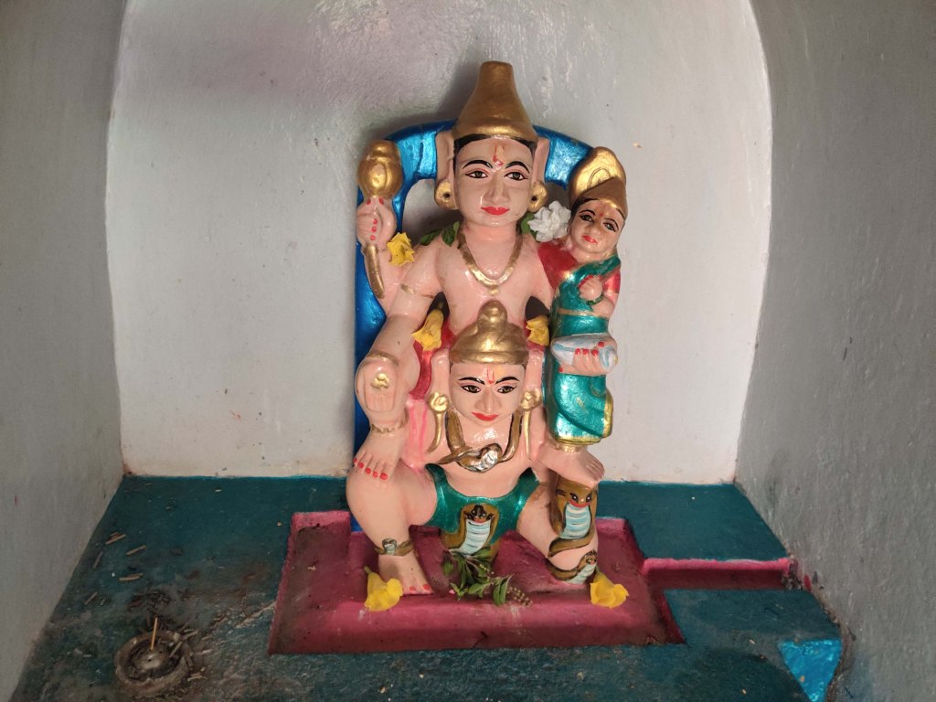 मूर्तीची उंची सुमारे सव्वा मीटर असून मूर्तीच्या पायाशी लक्ष्मी, हनुमान, गरुड आणि इतर सेवकांच्या आकृती दिसतात. प्रभावळीत ध्यानस्थ शिवाबरोबरच काही युद्ध मुद्रेतील आकृती आणि दोन सिंह प्रतिमा सुद्धा आहेत…देवळातच देवाची पालखीही टांगून ठेवलेली आहे. मंदिराच्या सभामंडपात ओक आणि जोगळेकर या दोन साधकांच्या समाधीची जागा दिसते.