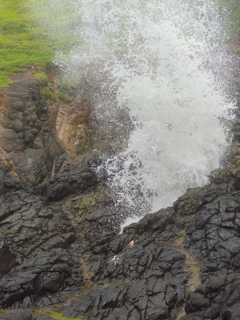 पावसाळ्यात इथं भरतीची उंची साडेतीन चार मीटर वर जाते त्यामुळे उंच फवारे पाहता येतात असा माझा कयास आहे. प्रा. प्र. के. घाणेकरांच्या पुस्तकात त्यांनी खूप सोपा हिशेब मांडला आहे. पौर्णिमा अमावास्येला दुपारी १२ वाजता … अष्टमी ते द्वादशी सकाळी आणि षष्ठीला आलं तर दुपारी चारच्या सुमारास चांगली भरती पाहता येते असं ते सांगतात.