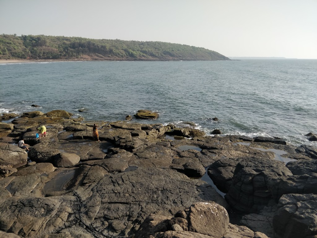 गुगल अर्थ सारखे डिजिटल टूल वापरले तर सॅटेलाईट फोटोग्राफ मध्ये ओहोटीच्या वेळेला स्पष्ट दिसणारी घळ पाहता येते. प्राध्यापक श्रीकांत कार्लेकरांनी इथं भौगोलिक संशोधन करून इथल्या ‘जिओ’ चा वेध घेतला होता. हेदवीच्या दगडी शिल्पांची, तिथल्या गुहेची त्यांनी सुंदर माहिती दिली आहे. अशीच भूरूपे वेळणेश्वर आणि कोर्लई येथे असल्याचे ते सांगतात. त्यांच्या समुद्राशोध या मराठी पुस्तकात आणि Coastal Geomorphology of India या इंग्लिश पुस्तकात कोकण आणि भारतातील किनारपट्टीची सविस्तर माहिती मिळते. या खडकाळ किनाऱ्यांवर बारनॅकल, ऑयस्टर, लिंपेट, सबिलेरिया, सी अर्चिन आणि विविध खेकडे असे वैविध्यपूर्ण प्राणीजीवन पाहता येते. गल, टर्न, व्हेडर, हेरॉन, सी इगल्स असे विविध पक्षी पाहता येतात. अन्नसाखळीत सर्वात वर असलेले त्यातले मुख्य म्हणजे शुभ्र सागरी गरुड.. यांच्यापैकी एकाच्या तडाख्याने माझे ड्रोन २०१९ मार्चमध्ये बाणकोट किल्ल्याजवळ क्रॅश झाले होते, जवळच कुठंतरी त्यांचं घरटे असेल. माझ्या कोकण भ्रमंतीमध्ये इथल्या फ्लोरा फौना कडे थोडेसे दुर्लक्ष झाले आहे हे मला प्रांजळपणे मान्य करावे लागेल.. कदाचित एखाद्या जाणकार माणसाची साथ फील्डवर्क वर मिळाली तर ही चूक सुधारता येईल. माझ्या गुहागर-वेळणेश्वर-हेदवी परिसरातील वास्तव्यात श्याम आठवले आणि गोपाळकृष्ण गोखले यांची खूप मदत झाली. त्या दोहोंच्या होम स्टे मध्ये जरूर राहा असे मी सांगीन. गोपाळकृष्ण गोखलेंचा इंजिनिअर फोटोग्राफर असलेला मुलगा उन्मेष माझा खास दोस्त.. माझी वीजेची गाडी चार्ज करायला त्याने मदत केली. भटकंती करून दमल्यानंतर वेळणेश्वर किनाऱ्यावर विक्रांत गोखलेंच्या कल्पतरूमध्ये मिसळ झोडायला नक्की जा.