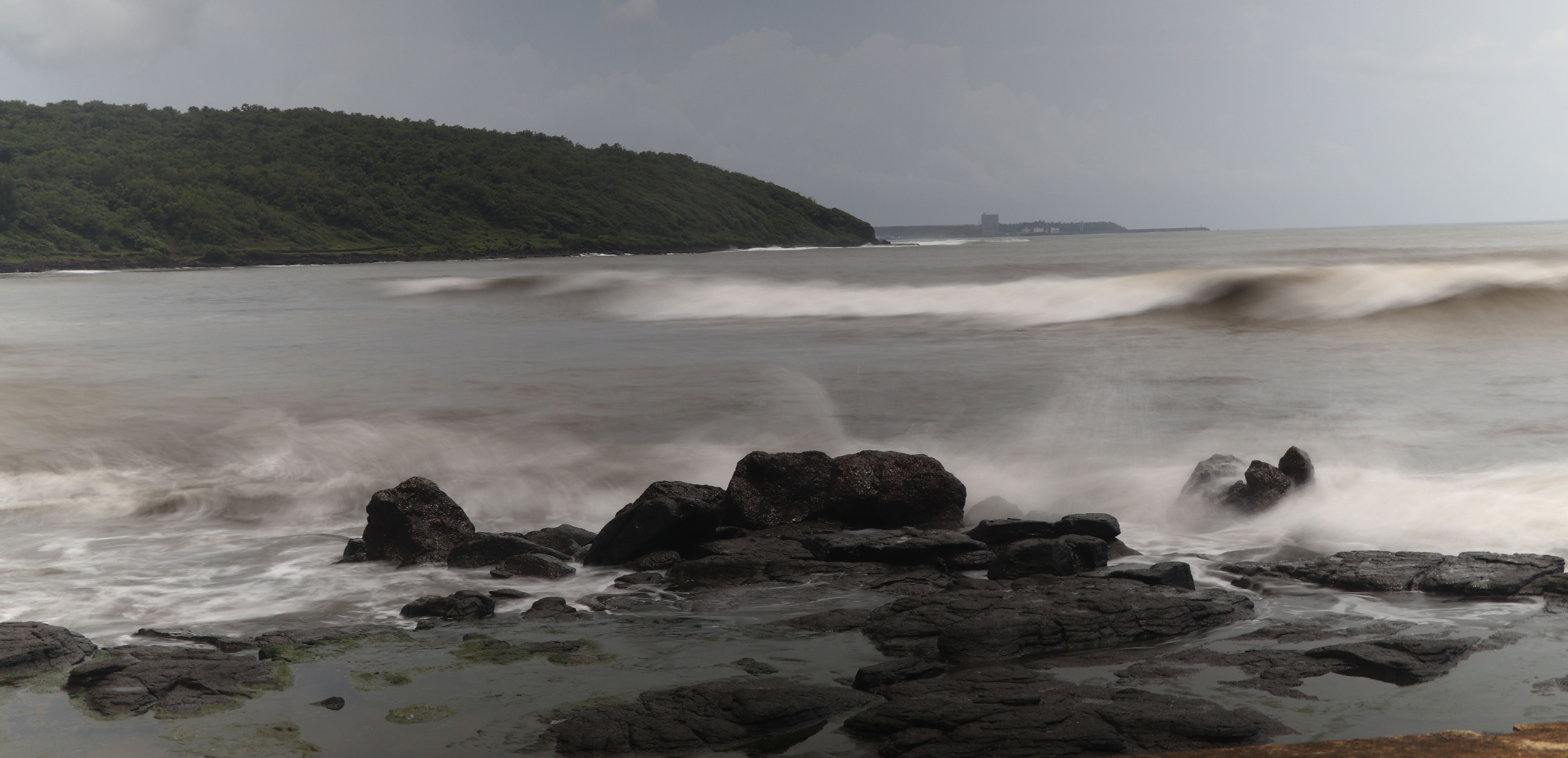 भरतीच्या वेळेला पूर्ण किनारा समुद्राच्या फेसाळणाऱ्या लाटांनी व्यापलेला असतो. किनाऱ्यावर वाळूत असलेल्या खडकांमधून खळखळणाऱ्या लाटा वाट काढत येत राहतात. पावसाळ्यात तर हे ठिकाण अधिकच गूढ रम्य वाटते. निळ्या आकाशने राखाडी रंग ल्यालेला असतो. एक प्रकारची खिन्नता आसमंतात पसरलेली असते; भरतीच्या लाटांना उधाण येऊन विशेष जोर चढलेला असतो. सूर्य भर दुपारी तळपण्याऐवजी ढगांच्या आवरणामागे लपलेला असतो. आपण सागराचे रौद्र रूप पाहता पाहता दंगून गेलेले असतो.