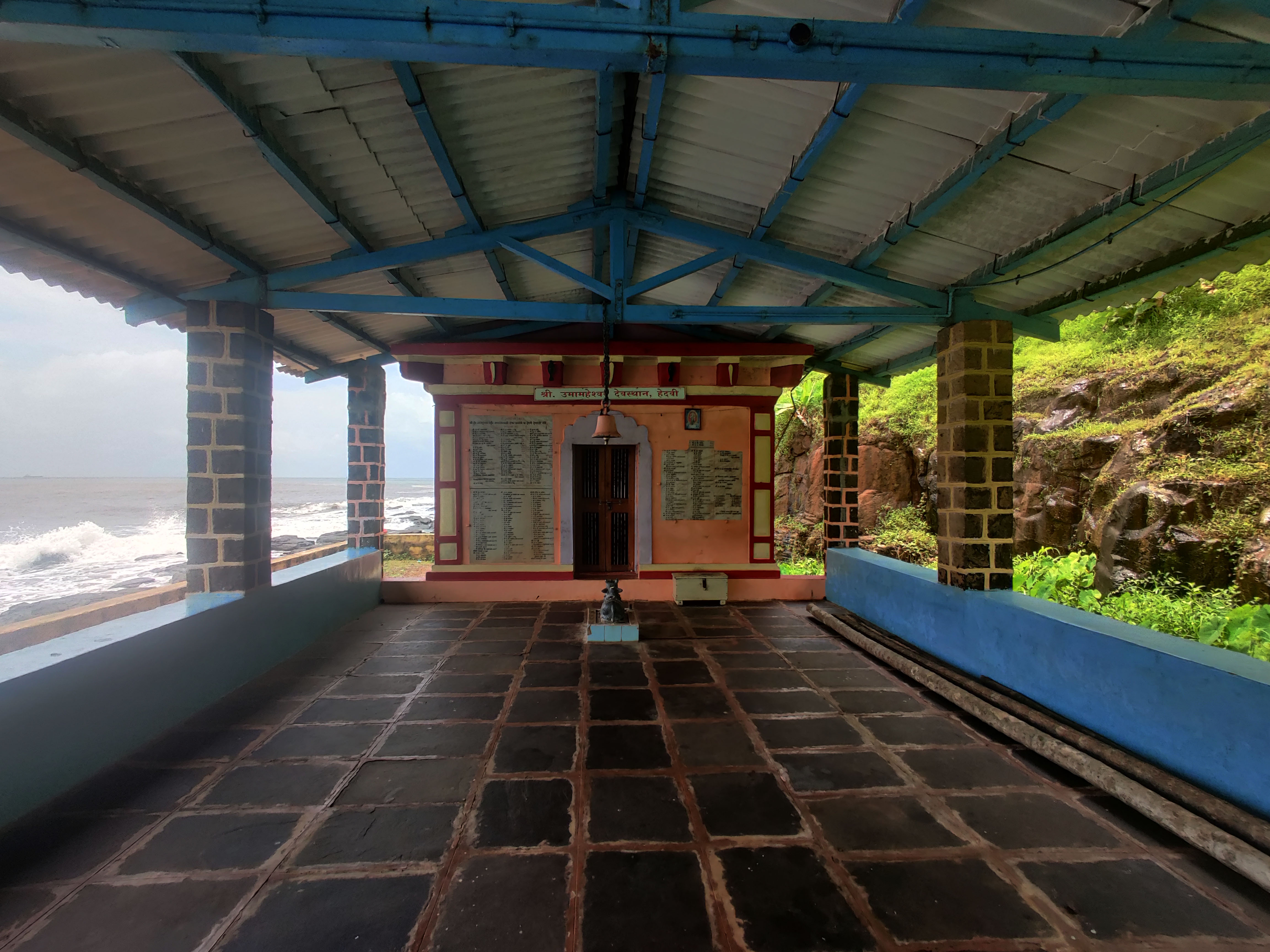 जेव्हा जेव्हा मी या भागात भटकंतीला गेलो आहे तेव्हा तेव्हा ऊन-पाऊस यांच्यापासून संरक्षण मिळावं म्हणून किंवा थोडीशी विश्रांती मिळावी म्हणून इथं शांत बसलो आहे. इथला छोटेखानी नंदी आजच्या भाषेत खूपच क्यूट दिसतो. मंदिरामागे एक झरा आहे ज्यातून नैसर्गिक मिनरल वॉटर येत असतं. इथून पुढं भरतीच्या वेळेला खडकांतून वाट काढत गेलं की बामणघळ येते आणि निसर्गाचा अविष्कार पाहता येतो. शिवशंभो समोर नतमस्तक झाल्यानंतर समुद्राची गाज ऐकत बसलं की खूप छान वाटतं. सभामंडपाच्या सावलीत बसून लाटांची आवर्तने पाहता येतात.