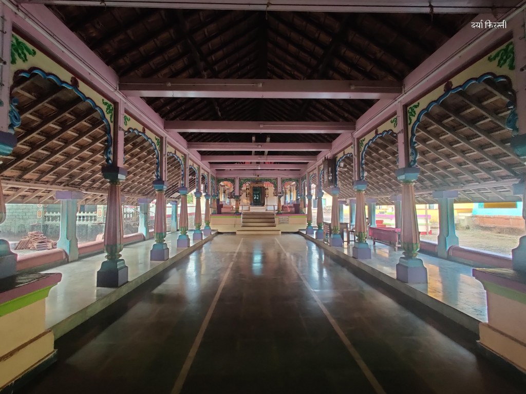 गावातील भातशेती आता किल्ल्याच्या खंदकातही केली जाते. गावात एकच बुरुज पाहता येतो. दुर्दैवाने मी तिथं सूर्यास्तानंतर पोहोचलो त्यामुळे बुरुजाचा फोटो मिळाला नाही. पण मंदिराच्या सभामंडपातील समांतर लाकडी खांबांची रचना आणि त्यावरील कोरीवकाम आकर्षक वाटते. असे लाकडी बांधकाम टिकवणे आणि देवळाचा जीर्णोद्धार होत असताना त्याचे हे वैशिष्ट्य जतन करणे ही महत्वाची गोष्ट ठरणार आहे. याबाबतीत ग्रामस्थांचे प्रशिक्षण आणि आवश्यक निधीचा पुरवठा या बाबी अत्यंत गरजेच्या आहेत.