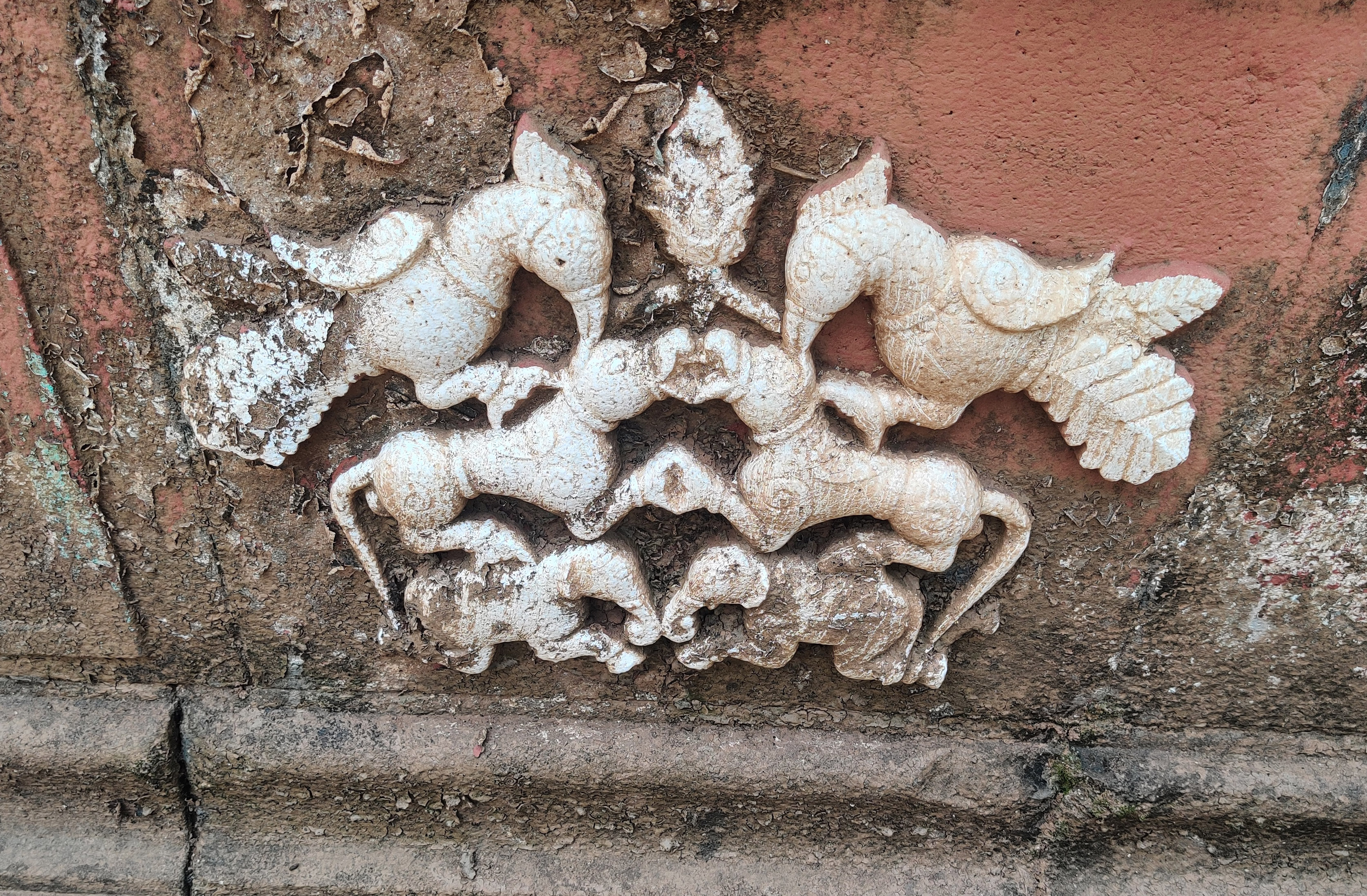 मंदिराच्या भिंतीवर असलेली गंडभेरुंड शिल्पे न पाहता इथून गेलात तर मग इथली वारी अपूर्ण ठरली असंच म्हणावं लागतं. पक्ष्याने पायात आणि चोचीत पकडलेले वाघ आणि त्या वाघांनी पंजात पकडलेले हत्ती अशी ही मोहक शिल्पे म्हणजे सत्ता आणि लष्करी सामर्थ्याचे प्रतीक आहेत असे मानले जाते. हर्णेचा गोवा दुर्ग किंवा देवाचे गोठणे येथील भार्गवराम मंदिर इथं अशी शिल्पे दिसतात.. महामार्गापलीकडं राजवाडी इथं असलेल्या सोमेश्वराच्या देवळावर सुद्धा गंडभेरुंड शिल्पे आहेत. यांचे नीट जतन तर व्हायला हवेच शिवाय या दृश्य संस्कृतीतील वारशाबद्दल लोकांना समजवून सांगितलेही पाहिजे. महेश तेंडुलकरांनी या विषयावर लिहीलेले गडमंदिरांवरील द्वारशिल्प हे माहितीपर पुस्तक; गंडभेरुंड आणि तत्सम शिल्पांबद्दल जाणून घेण्यासाठी अतिशय उपयुक्त आहे. इथं जवळच तुरळला नितीन करकरेंचे मामाचा गाव/ रस्टिक हॉलिडे आणि गोळवली येथील अमोल लोध यांचे राई ही दोन अतिशय छान कृषी पर्यटन केंद्रे आहेत.. तिथं मुक्काम करायला हरकत नाही. सरंदचे विष्णू मंदिर, धामणीचा लक्ष्मीकेशव, आरवली आणि आंबव ची सूर्यमंदिरे.. शिरंबे येथील मल्लिकार्जुन देवस्थान.. देवपाट जवळ असलेले लक्ष्मी-मल्लमर्दन मंदिर.. मावळंगे चे योगनरसिम्ह देवस्थान अशी कैक अद्वितीय मंदिरे याच परिसरात आहेत. हे सगळं पाहायचं असेल तर संगमेश्वर तालुक्यात कोकण भ्रमंती साठी यायला हवं.. अन या सर्व मंदिरांचा शिरोमणी म्हणजे कसबा संगमेश्वर येथील श्री कर्णेश्वर.. शिवाय कसब्यातील अनेक प्राचीन मंदिरांचे अवशेष आहेतच. त्यामुळे कोकणात पाहण्यासारखं खूप काही आहे.. फक्त ते पाहायला वेळ आणि खुली दृष्टी हवी.. ती घेऊन इथं खुशाल या.. कोकण आपलाच असा..