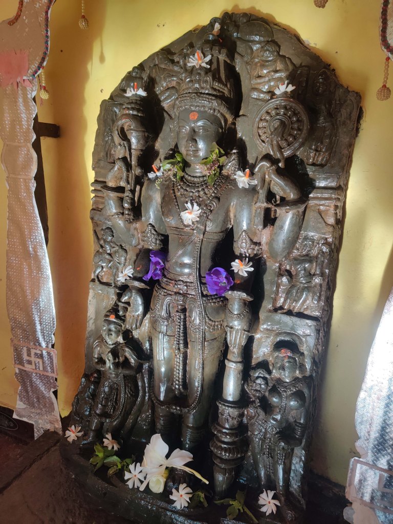ही मूर्ती पाऊण मीटर उंच त्यामुळे तिला धाकला लक्ष्मीकेशव म्हणतात.. प्रभावळीत असलेले दशावतार, अगदी खरे वाटतील असे कोरीव दागिने.. पचशग हा आयुधक्रम ही साम्यस्थळे आपल्याला लगेचच लक्षात येतात.. गंमत पहा ना.. एकाच देवाचे एकच मूर्त स्वरूप.. एकाच गावात.. पण वेगळे दगड आणि उंची वेगळी.. चेहरा सुद्धा वेगळा.. थोरला-धाकला होऊन एकाच परिसरात प्रतिष्ठापित झालेला लक्ष्मीकेशव म्हणजे गुहागर तालुक्याचे पुरातन वैभवच