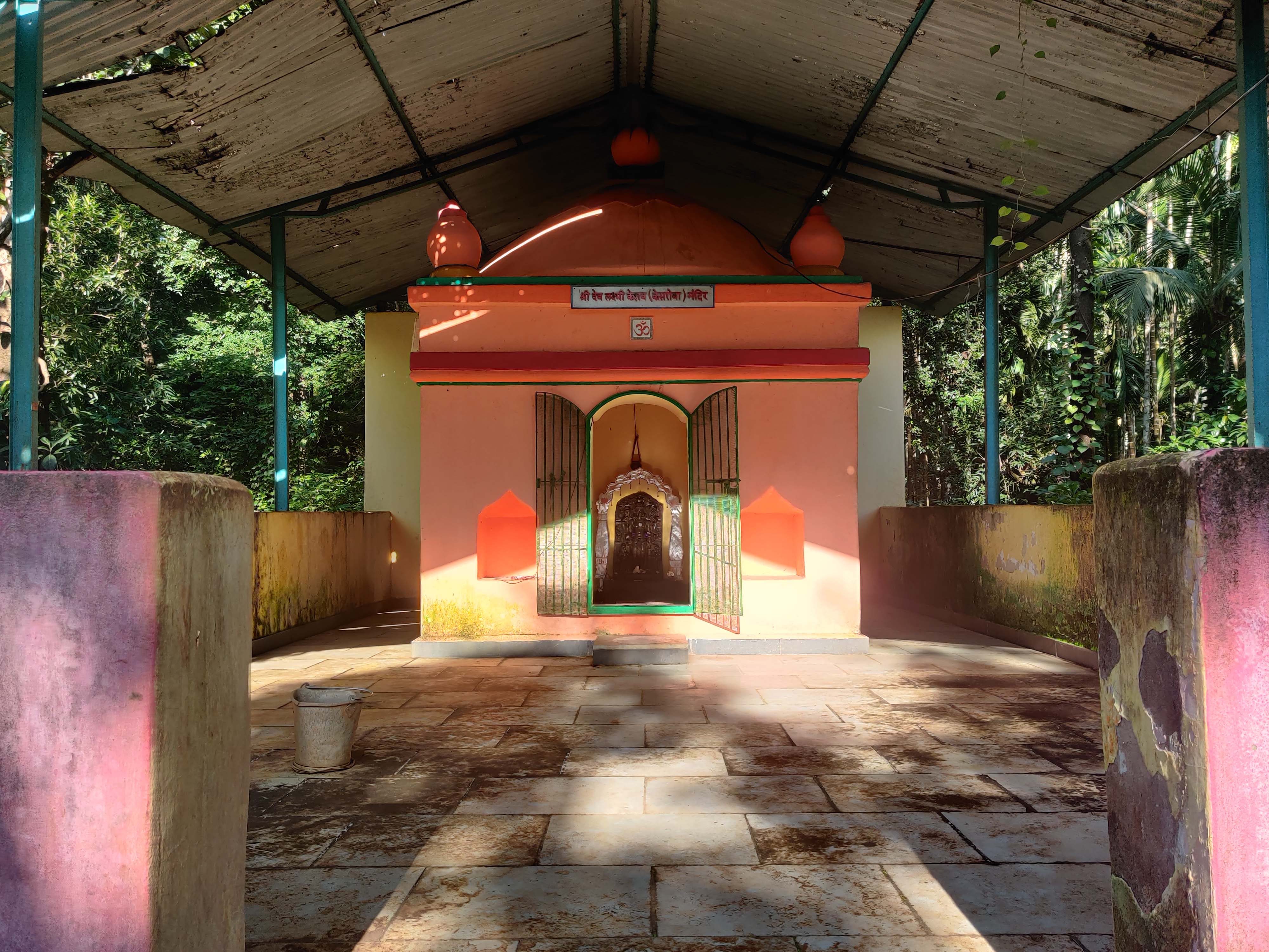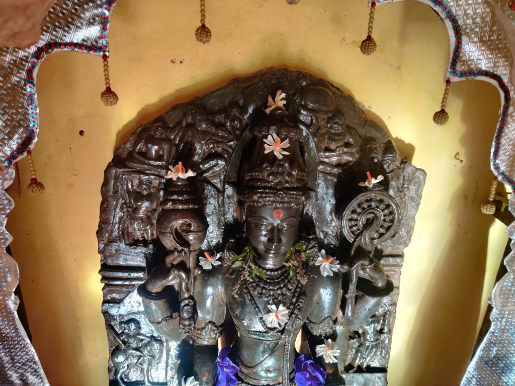 इथं समोरच काटदरे कुटुंबाच्या खासगी जागेत एक देऊळ आहे. पुरातन मंदिराला आता बाहेरून संरक्षक बांधकाम केले आहे जेणेकरून देवळाचे मूळ रूप गायब होणार नाही परंतु त्याला निसर्गाच्या तडाख्यांपासून संरक्षणही मिळेल. मंदिरावर श्री लक्ष्मी केशव म्हणजेच केसरोबा अशी पाटी दिसते. शेडवईच्या लक्ष्मीकेशवाला सुद्धा श्री केशरनाथ म्हंटले गेले आहे. आम्ही वेळणेश्वर मुंबई परतीच्या प्रवासात असताना इथं गेलो होतो त्यामुळे काटदरे मंडळींनी केलेला चहा- नाश्त्याचा आग्रह आणि पाहुणचार पुढच्या वेळी येण्याचे वचन देऊन post-dated स्वीकारावा लागला. नाहीतर कोकणात राहणाऱ्या मंडळींशी गप्पा मारण्याचा आनंद वेगळाच असतो. काकांनी देऊळाचे दार उघडून आमचे स्वागत केले. ताशीव काळ्या दगडातील शिल्पाने आमचे लक्ष वेधून घेतले.
