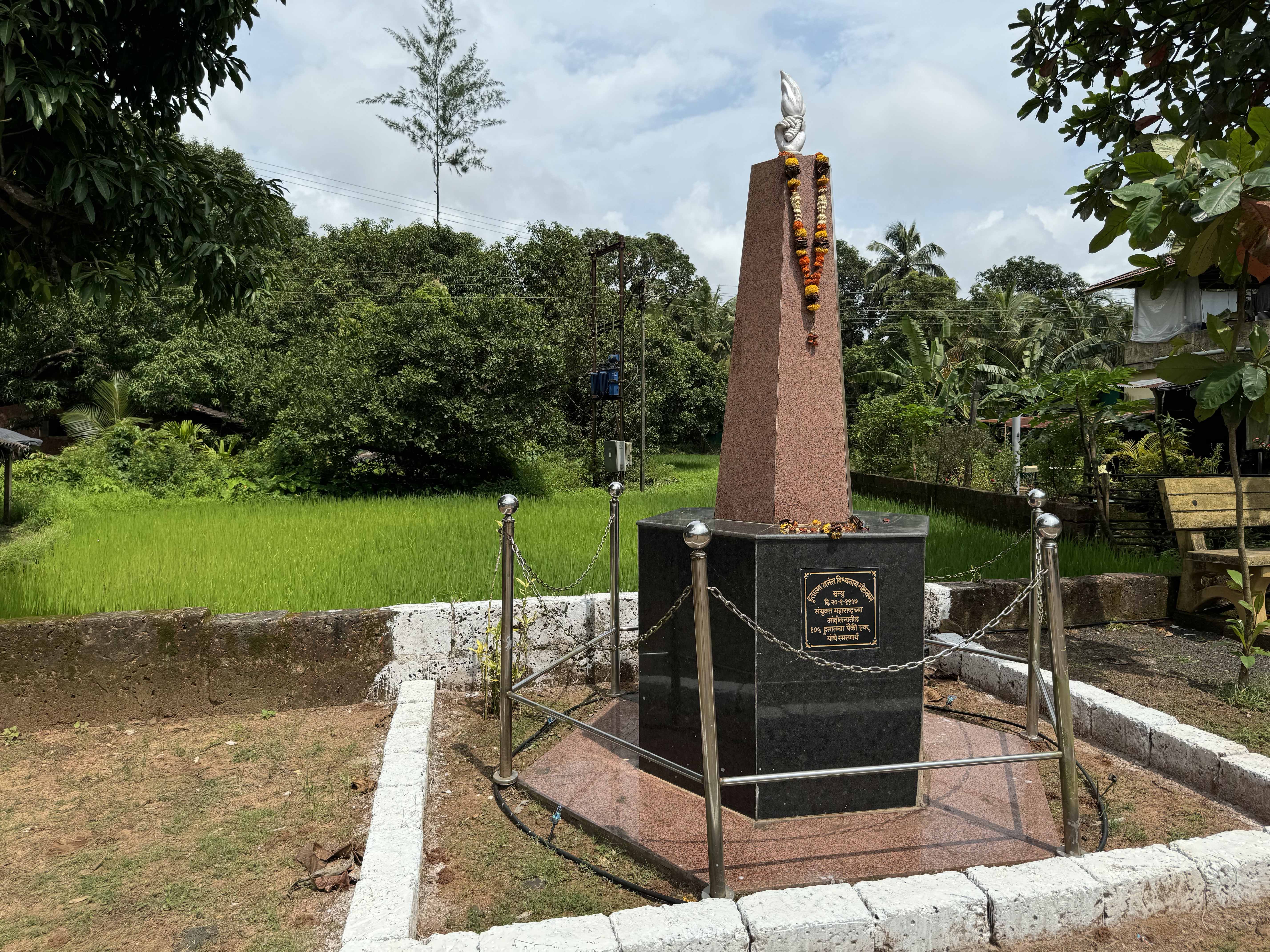 मंदिरासमोरच एसटी स्टँड असल्यामुळे तिथे एक रिकामी जागा आहे तिथे माझं लक्ष वेधून घेतलं एकाच मार्गाने संयुक्त महाराष्ट्र चळवळीत महाराष्ट्र घडावा म्हणून ज्या मंडळींनी बलिदान दिलं त्यांच्यापैकी एक या गावातील आहे त्यांचं हे स्मरण स्थळ.