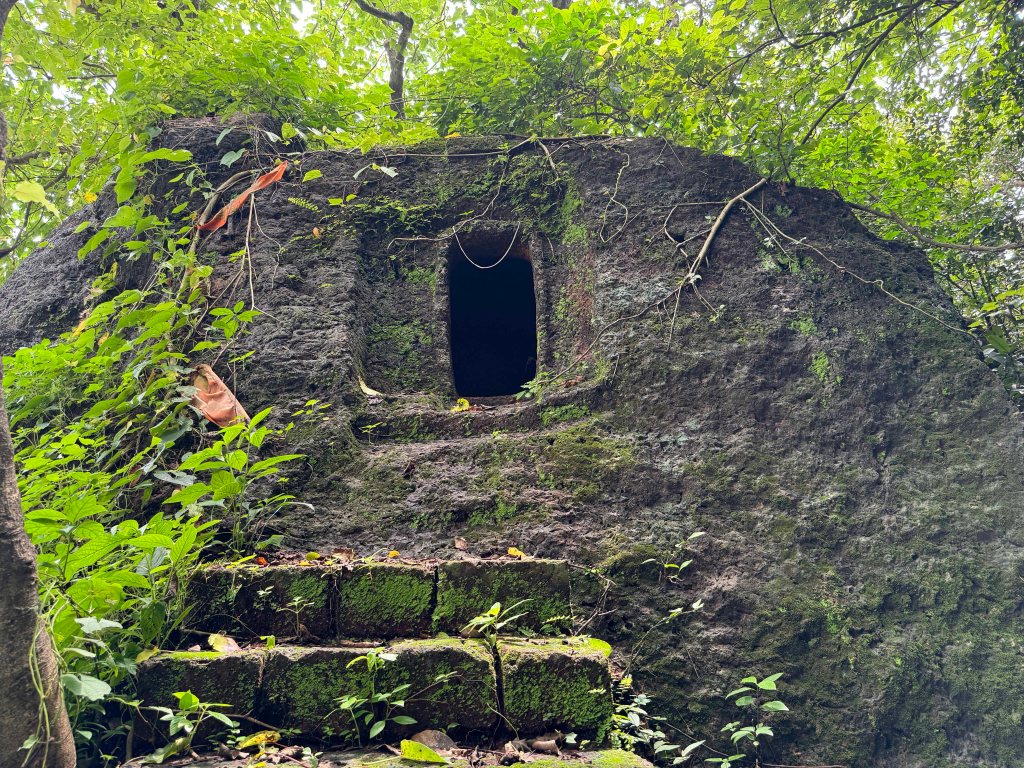 गावात शिरण्यापूर्वी उजवीकडे आपल्याला दिसते तिथली प्राथमिक शाळा आणि आरोग्य केंद्र आणि डाव्या बाजूला थोड्याशा झाडीतून काही दगडी पायऱ्या वर जाताना दिसतात. तिथे अडीच फूट लांब रुंद असलेली एक गुहा किंवा मानवनिर्मित दगडी खोली आहे. तिथं बिबट्या वाघाचा अधिवास आहे असं ग्रामस्थ सांगतात. या ठिकाणी कधी कधी तुम्हाला अचानक व्याघ्रदर्शन होऊ शकतं पण आजतागायत कोणत्याही मनुष्याला इथं बिबट्यांनी कोणत्याही प्रकारची इजा पोहोचवल्याचे ज्ञात नाही.