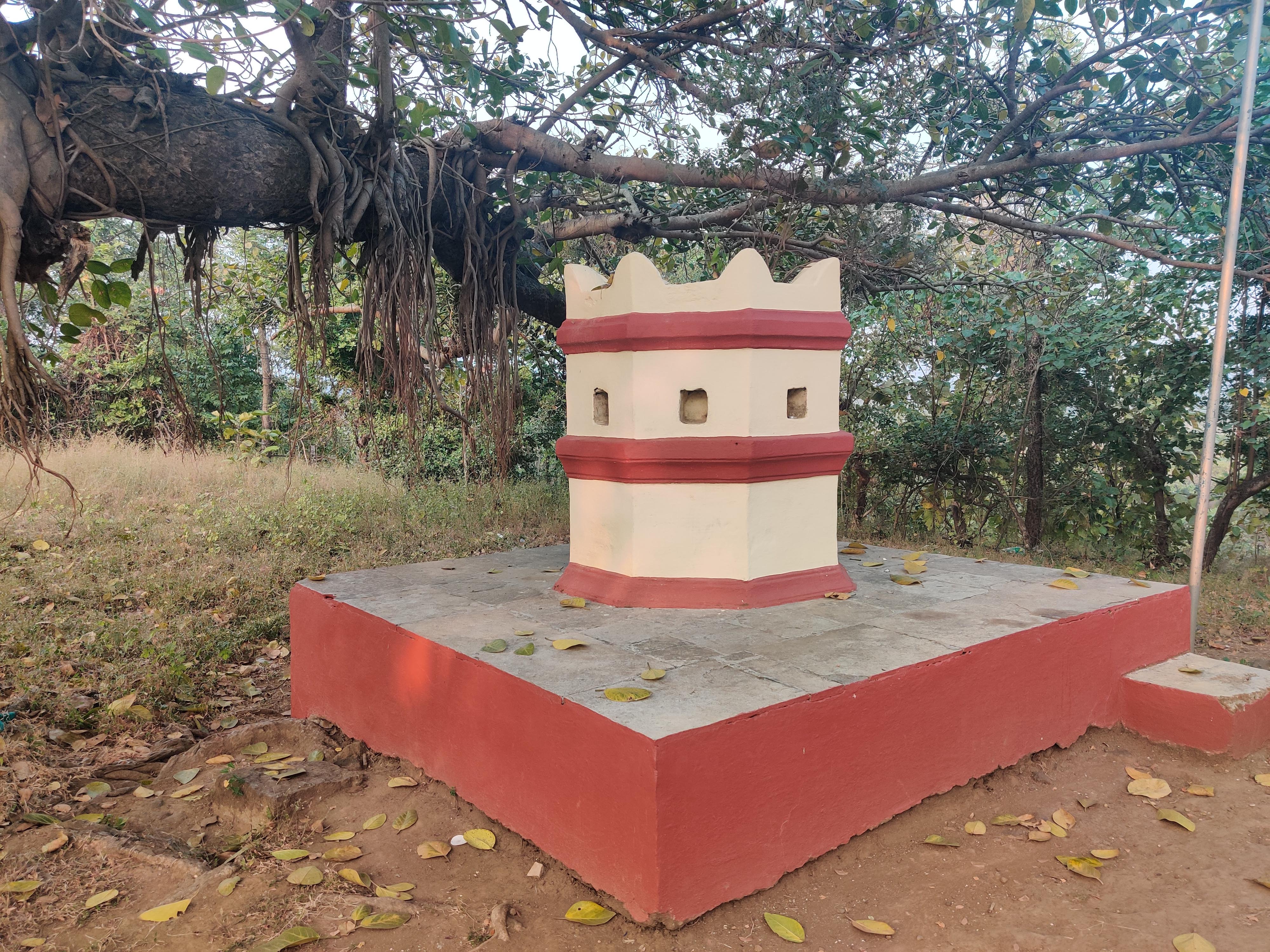 मंदिराजवळ पोहोचले की लक्ष वेधून घेते ती इथली कोकणी पद्धतीची दीपमाळ. यावरील हनुमान प्रतिमा हे दीपमालेचे वैशिष्ट्य म्हणता येईल. परिसरात काही तुळशी वृंदावनेही आहेत… ही सतीची वृंदावने असावीत असा काही अभ्यासकांचा कयास आहे. पण त्याला काही ठोस शिलालेखासारखा आधार इथं सापडला नाही.