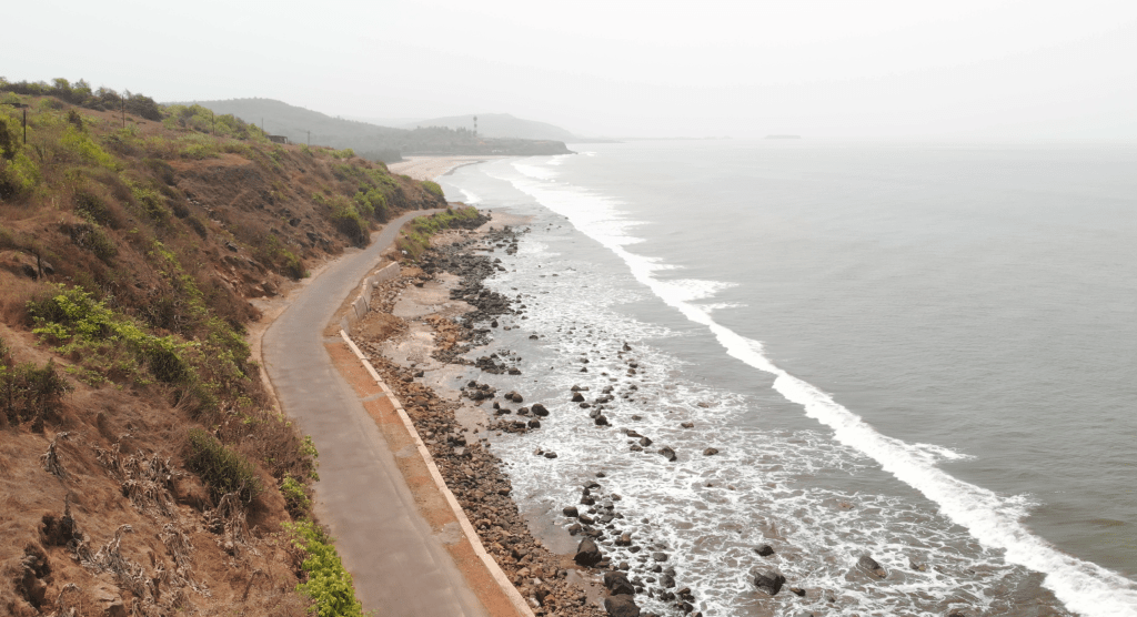 पडले नंतर सावणे किनारा येतो. तिथं रस्ता अगदी समुद्राला लागूनच आंजर्ल्यापर्यंत पुढं जात राहतो. आपल्याला दीपगृह आणि पलीकडे क्षितिजावर सुवर्णदुर्ग किल्ला दिसू लागतात.