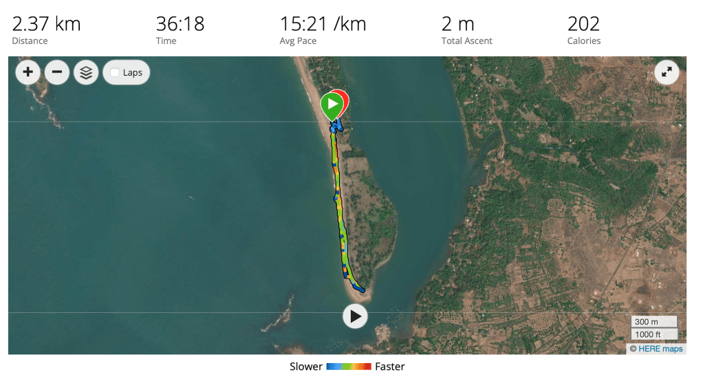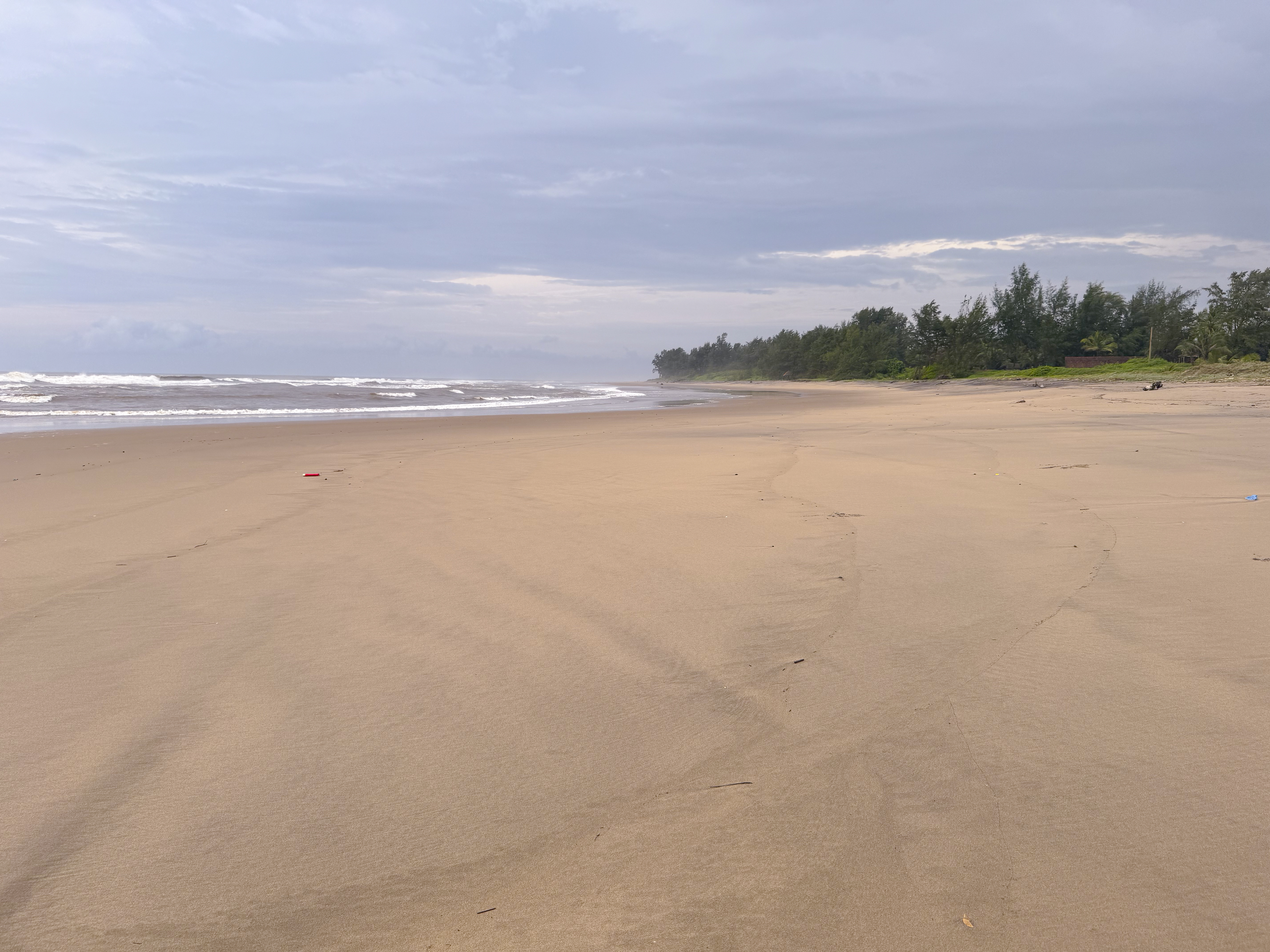 मला नकाशात दिसलेल्या सॅटेलाईट चित्रावरून असं वाटलं होतं की इथं वाळूच्या दांड्यावर फारशी वृक्षराजी नाही परंतु प्रत्यक्षात इथं अगदी शेवटपर्यंत हिरवळ असल्याचे पाहून सुखद आश्चर्य वाटले. जाऊन येऊन अर्ध्या तासाची छान अडीच किलोमीटर लांबीची भ्रमंती झाली. गड नदीच्या संगमाच्या मुखाच्या थोड्याशा उत्तरेला एक खडकाळ भाग आहे त्याला कवडा रॉक्स असे नाव स्थानिकांनी दिले आहे. काहीजण या जागेला शिंपला पॉईंट असेही म्हणतात.