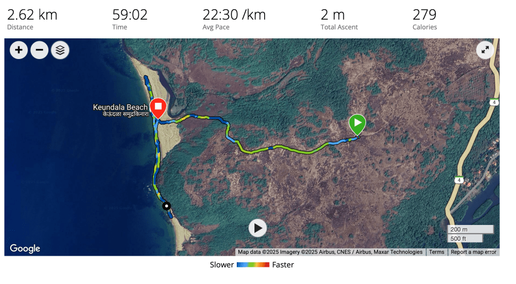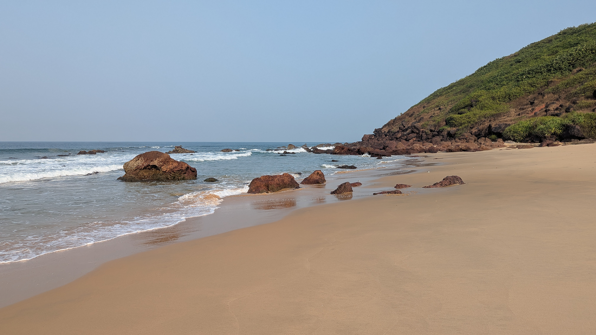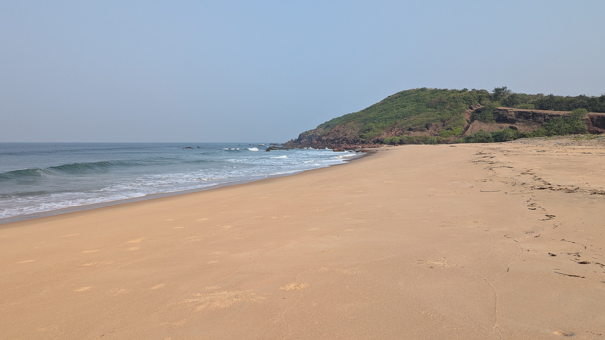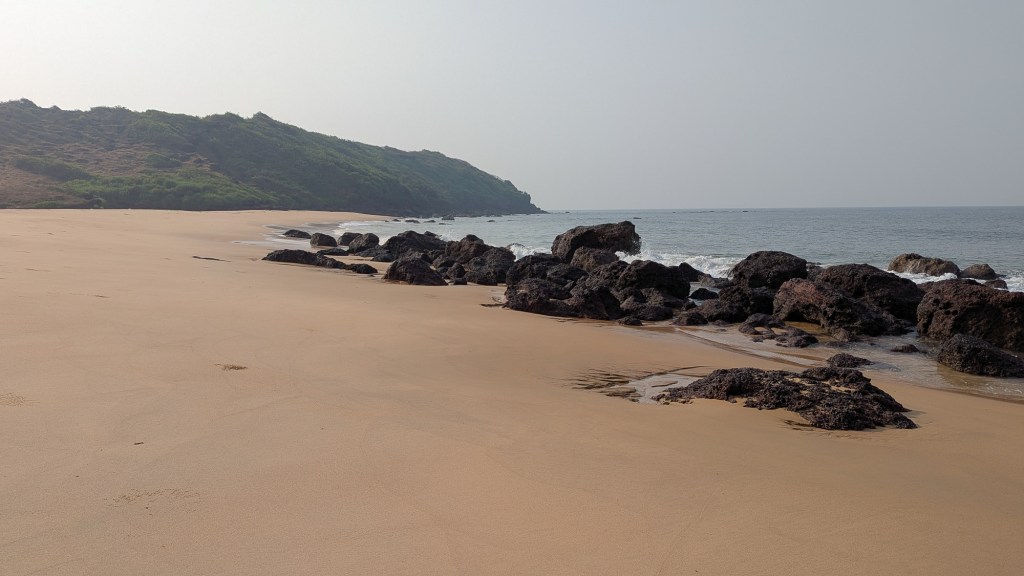 स्वच्छ पांढरी वाळू, तितकेच स्वच्छ पाणी आणि उत्तर टोकावर सागराला जाऊन भिडलेली हिरवट रंगाची टेकडी असा परिचयाचा तरीही नवा भासणारा देखावा तिथं पाहिला. दर्या फिरस्तीच्या या टप्प्यात जमेल तिथं विविध समुद्र किनाऱ्यांच्या दोन्ही टोकांपर्यंत चालत जायचे असे ठरवलेले असल्याने माझी पावले समोरच्या टेकाडाकडे वळली. बूट काढून ठेवले.. पॅन्टला घडी घातली आणि मखमली वाळूचा पाहुणचार अनवाणी पायांनी घेत घेत चालायला लागलो.